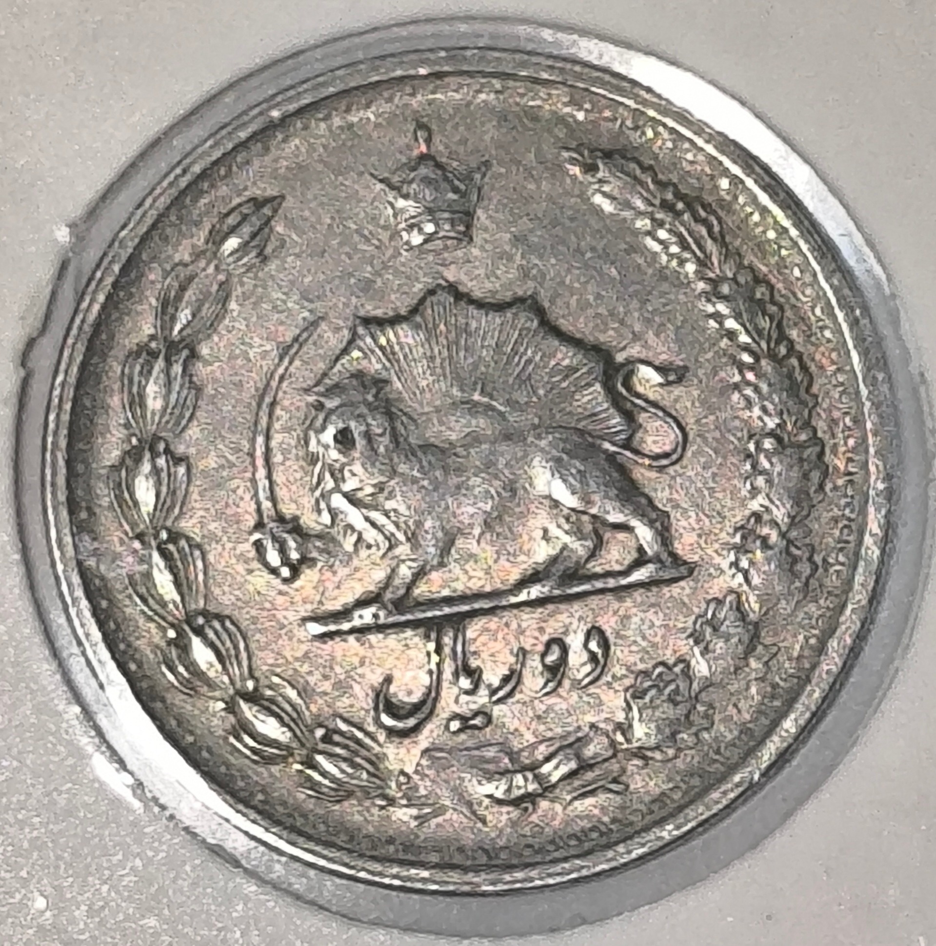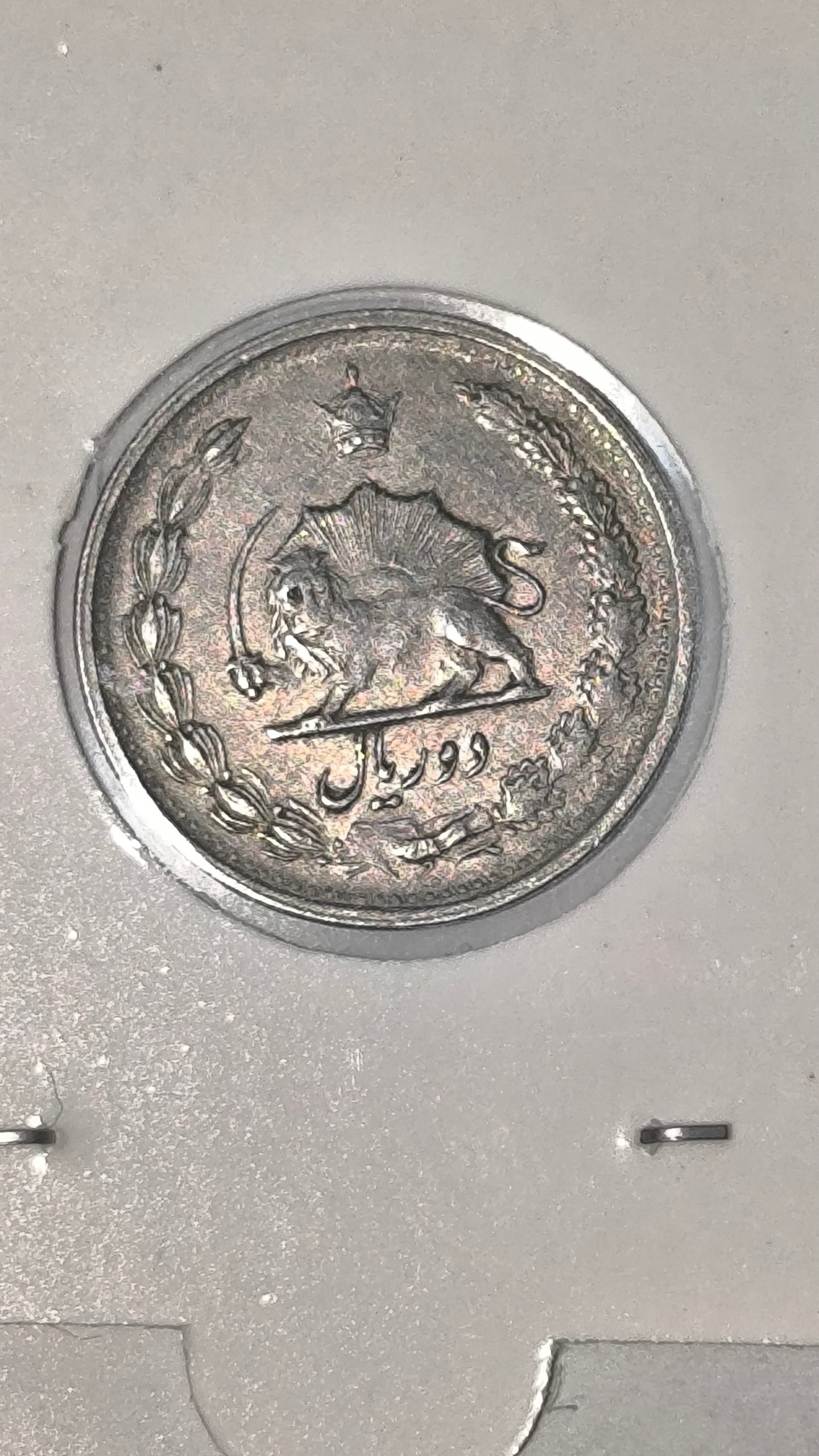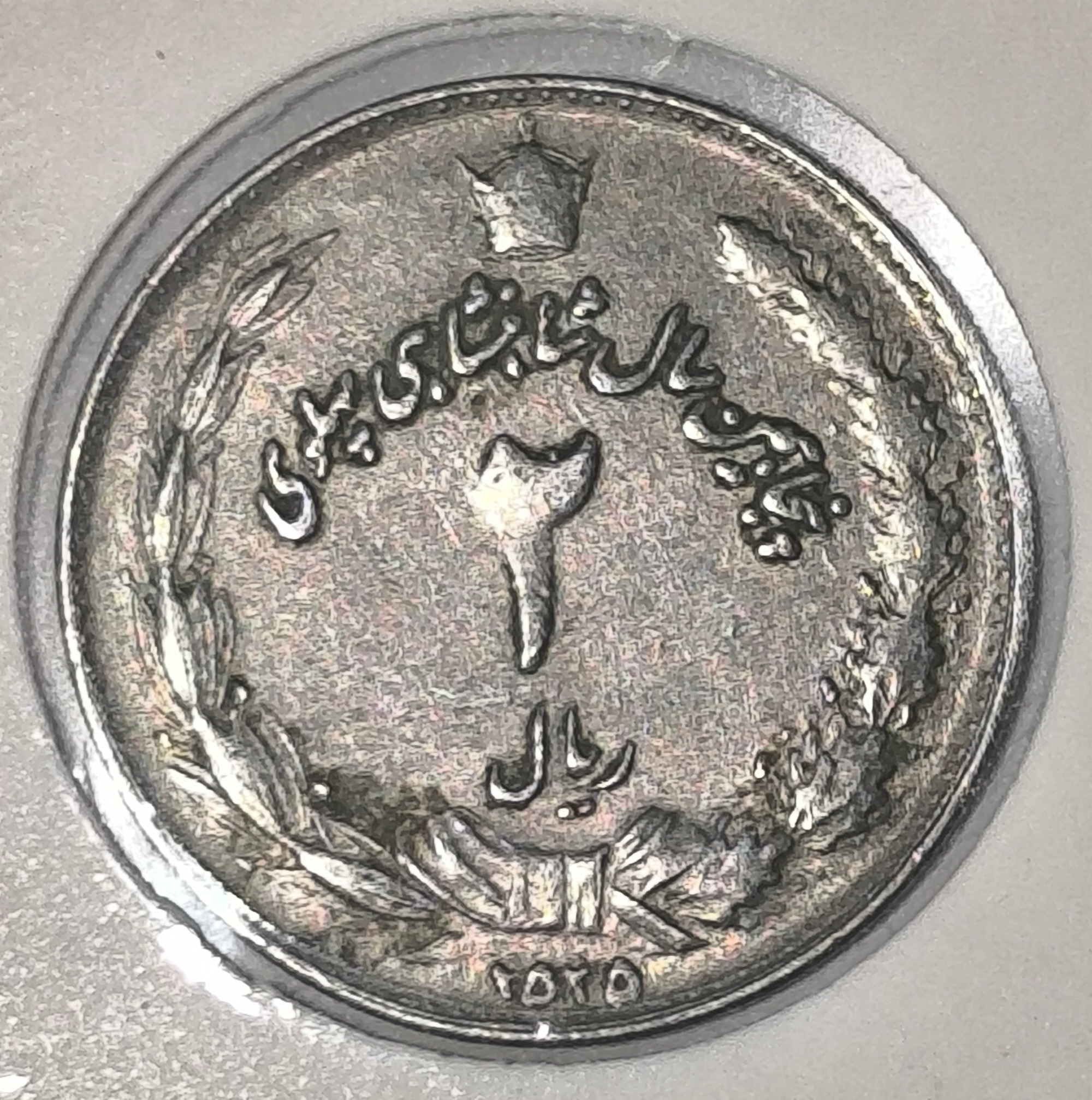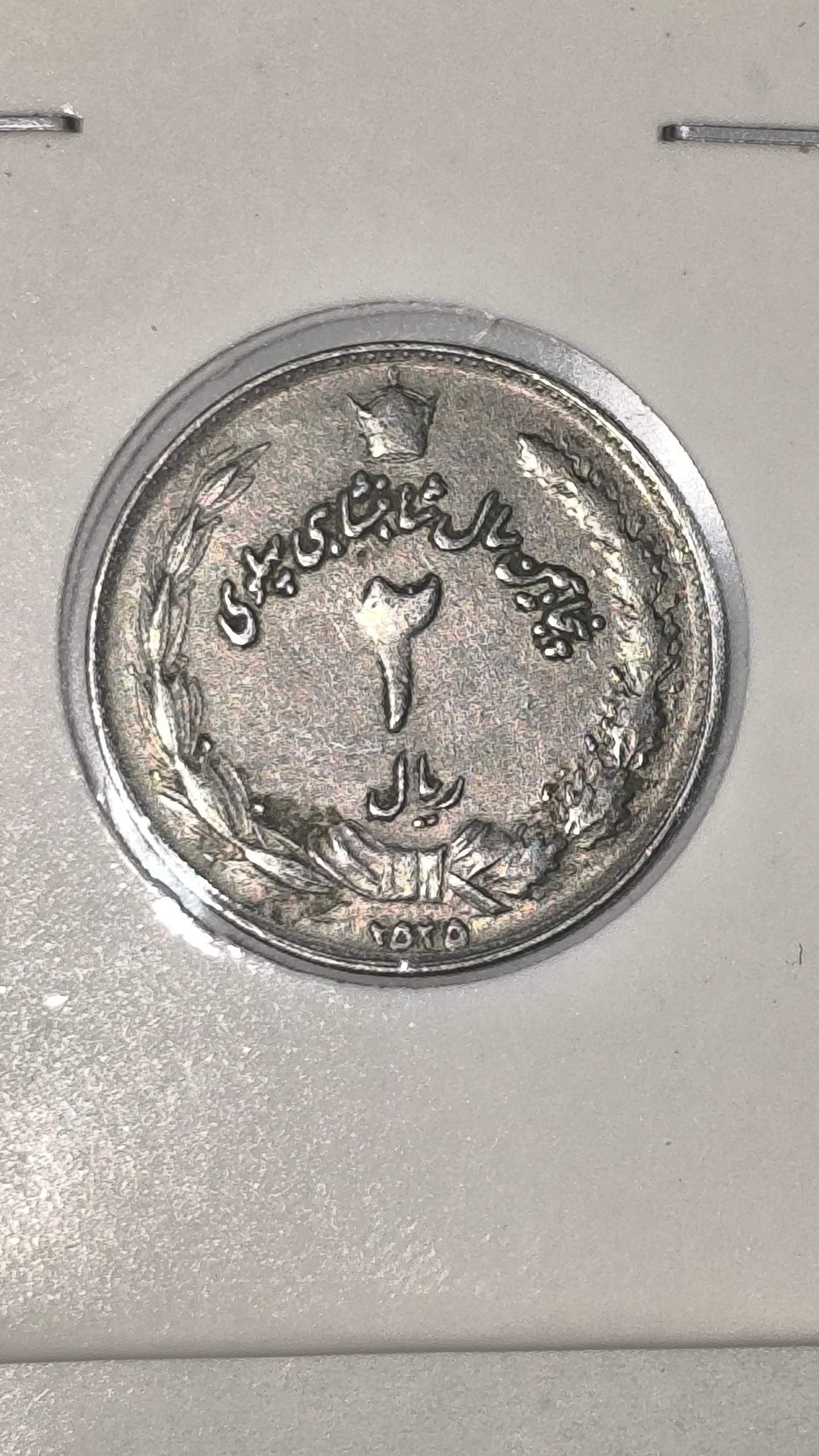 دو ریالی تمیز در حد نو برای پنجاه و مین سالگرد شاهنشاهی با یک ارور به جای 2535 چاپ شده 1525 دو عدد اشتباه و یک ارور چرخش 35 درجه کلا برای اون سال با این چاپ واقعاً بعید بوده و بسیار کمیاب حساب میشه