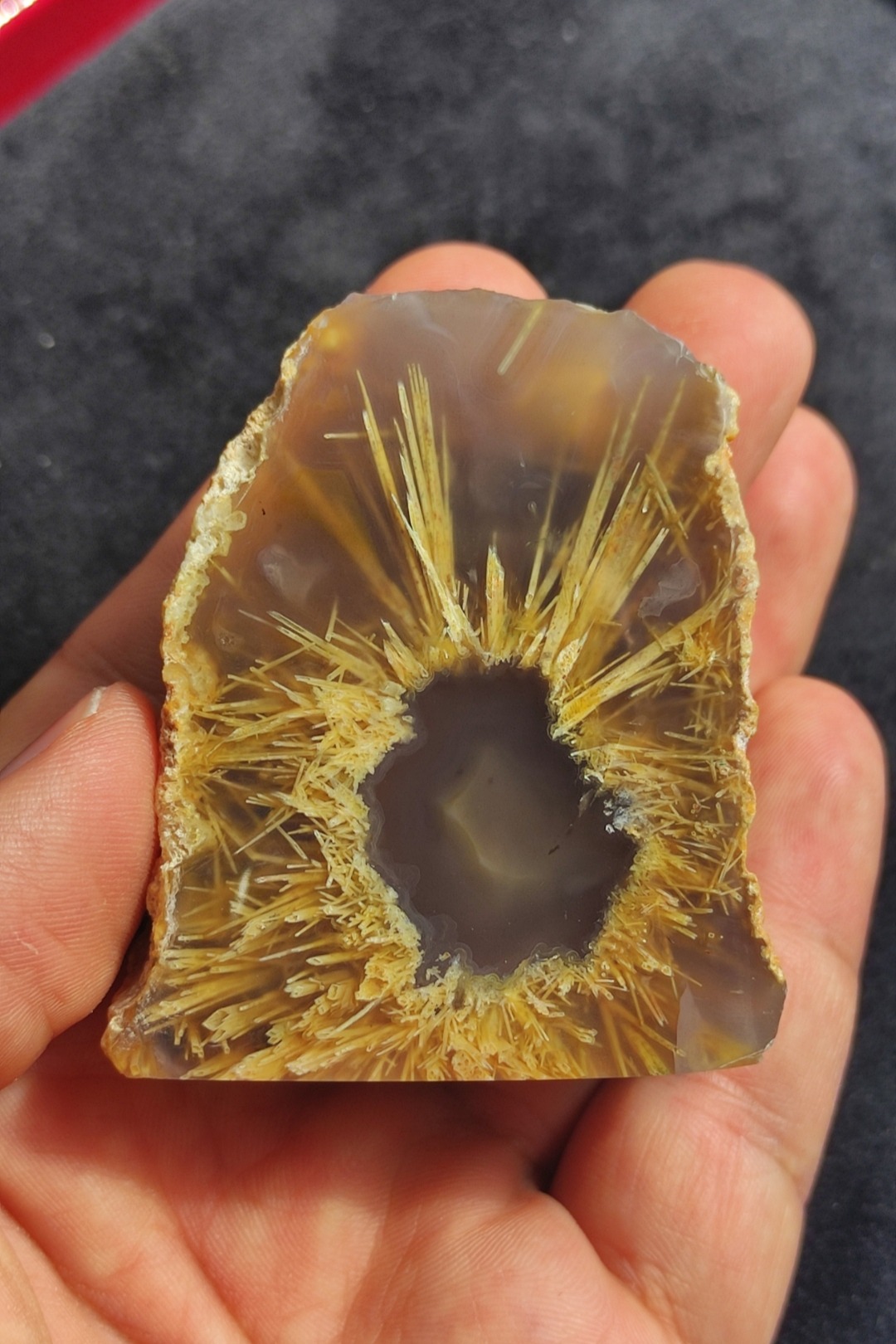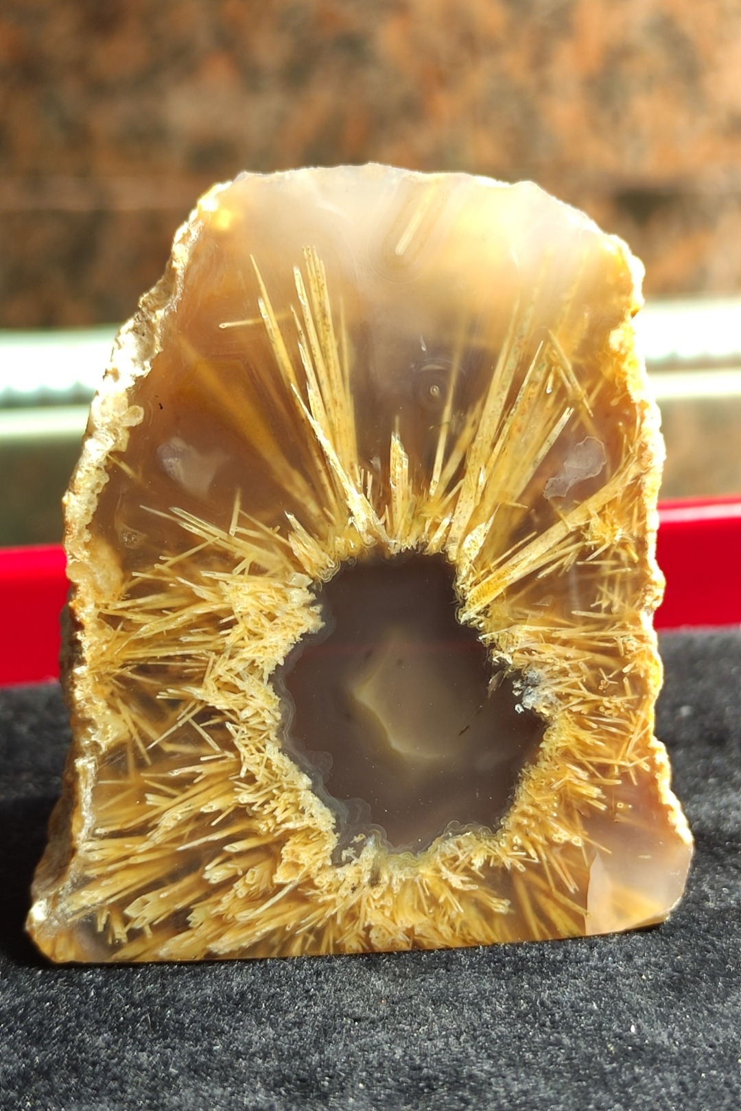 سنگ عقیق روتایل خورشیدی فوق کلکسیونی کاملا طبیعی و معدنی نمونه ای بی بدیل استخراج شده از معادن غنی خراسان جنوبی نقاشی خداوند یک اثر هنری درجه یک مناسب کلکسیونر های حرفه ای برش خورده و پولیش حرفه ای نقش یک خورشید زیبا در دل سنگ هدیه ای ارزشمند و ماندگار از دل طبیعت برای خودتون یا عزیزانتون