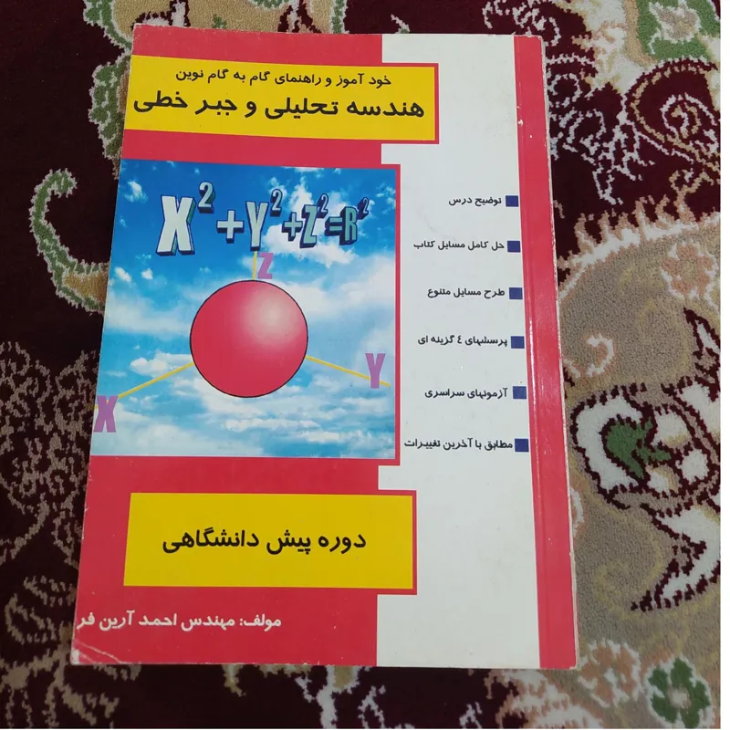 کتاب خود آموز و راهنمای هندسه تحلیلی و جبر خطی تالیف مهندس احمد آرین فر 334 صفحه انتشارات گام نوین ، کتاب سالم و تمیز