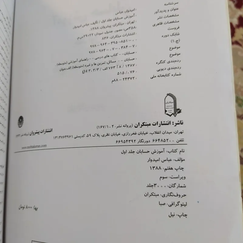 کتاب آموزش حسابان دوجلدی تالیف عباس امیدوار انتشارات مبتکران چاپ سال 1388،