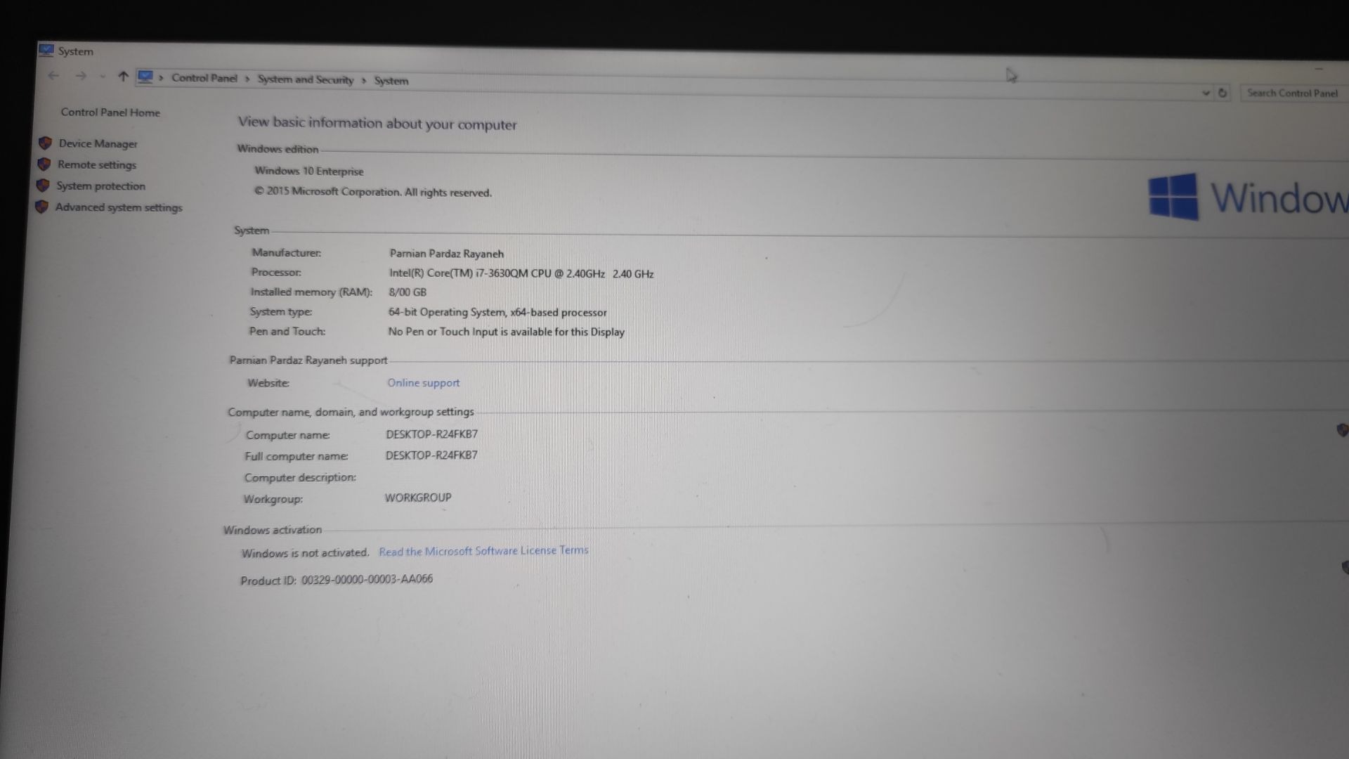 | مدل پردازنده | Intel Core i7-3630QM esam 2.40GHz |