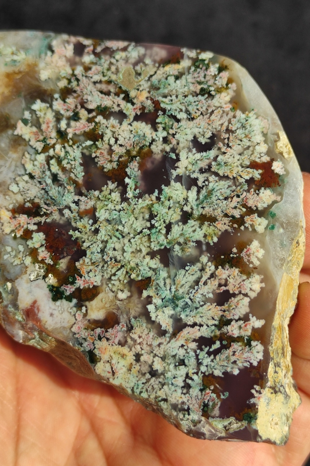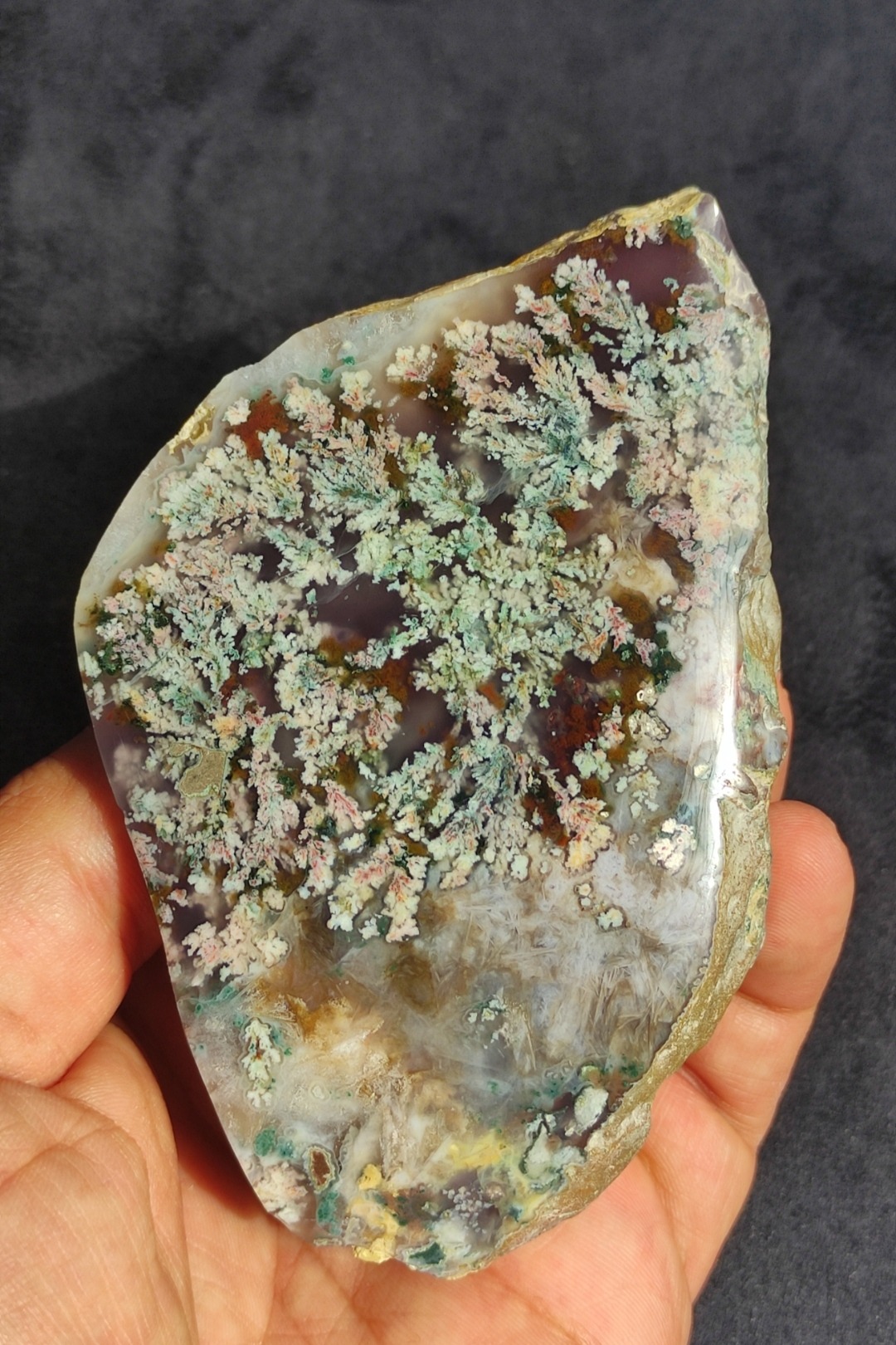 سنگ راف عقیق شجر هفت رنگ کاملا طبیعی و معدنی استخراج شده از معادن غنی خراسان جنوبی برش خورده و پولیش شده نمونه ای کم نظیر و جذاب مناسب کلکسیون و تراش اثری هنری از دل طبیعت هدیه ای ارزشمند و ماندگار از دل طبیعت برای خودتون یا عزیزانتون وزن سنگ 390 گرم
