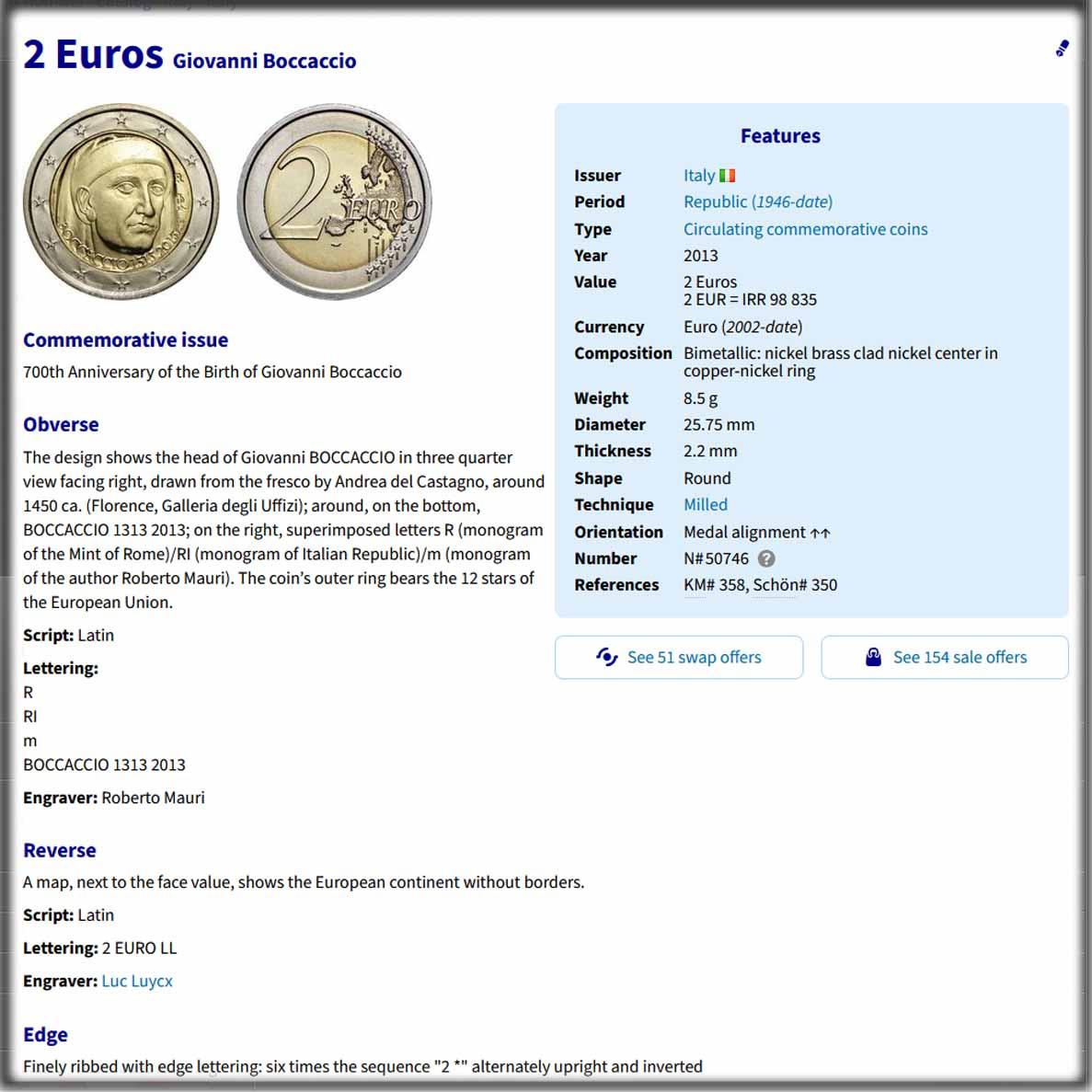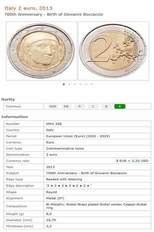 سکه یادبودی 2 یورو ایتالیا 2013 (نایاب) بوکاچو