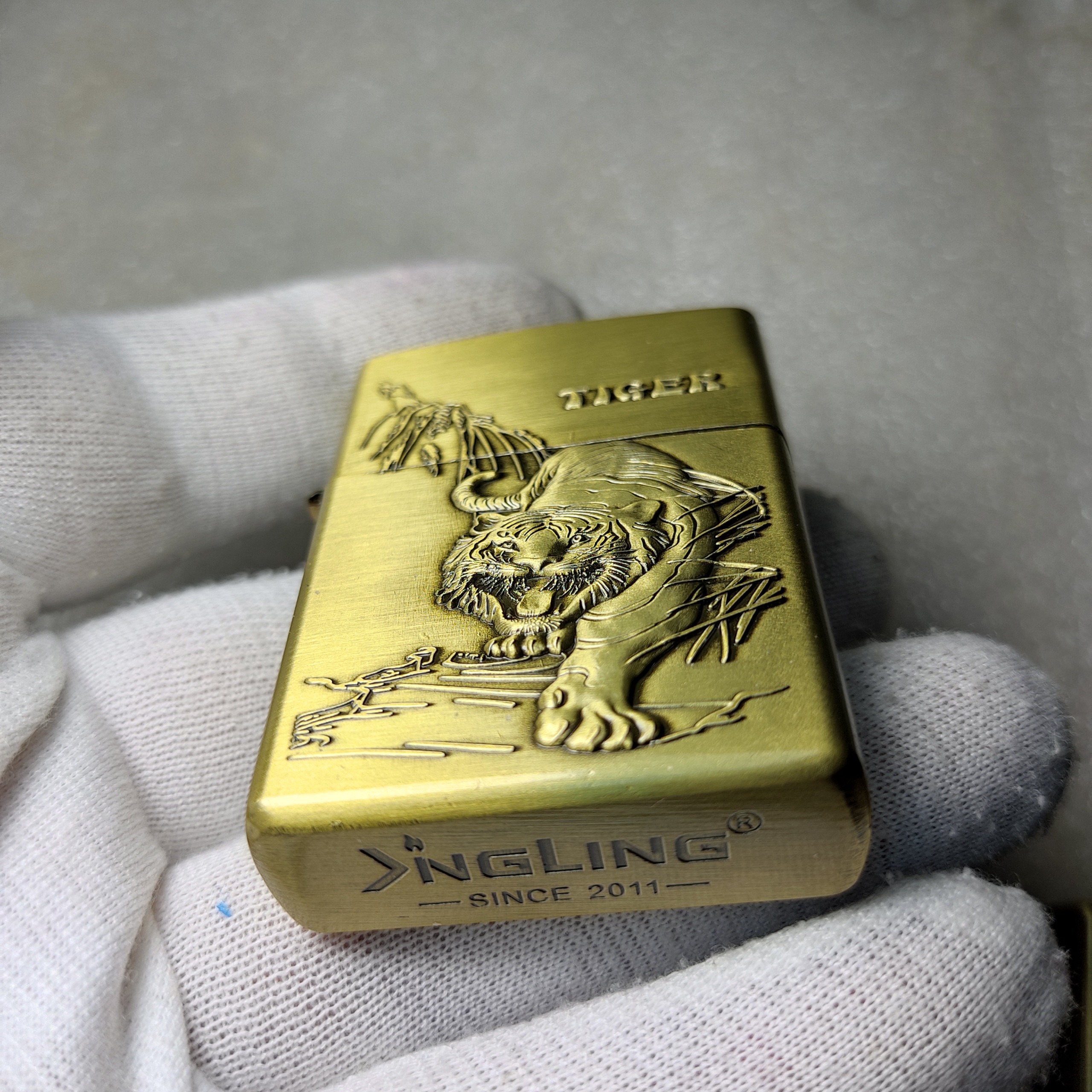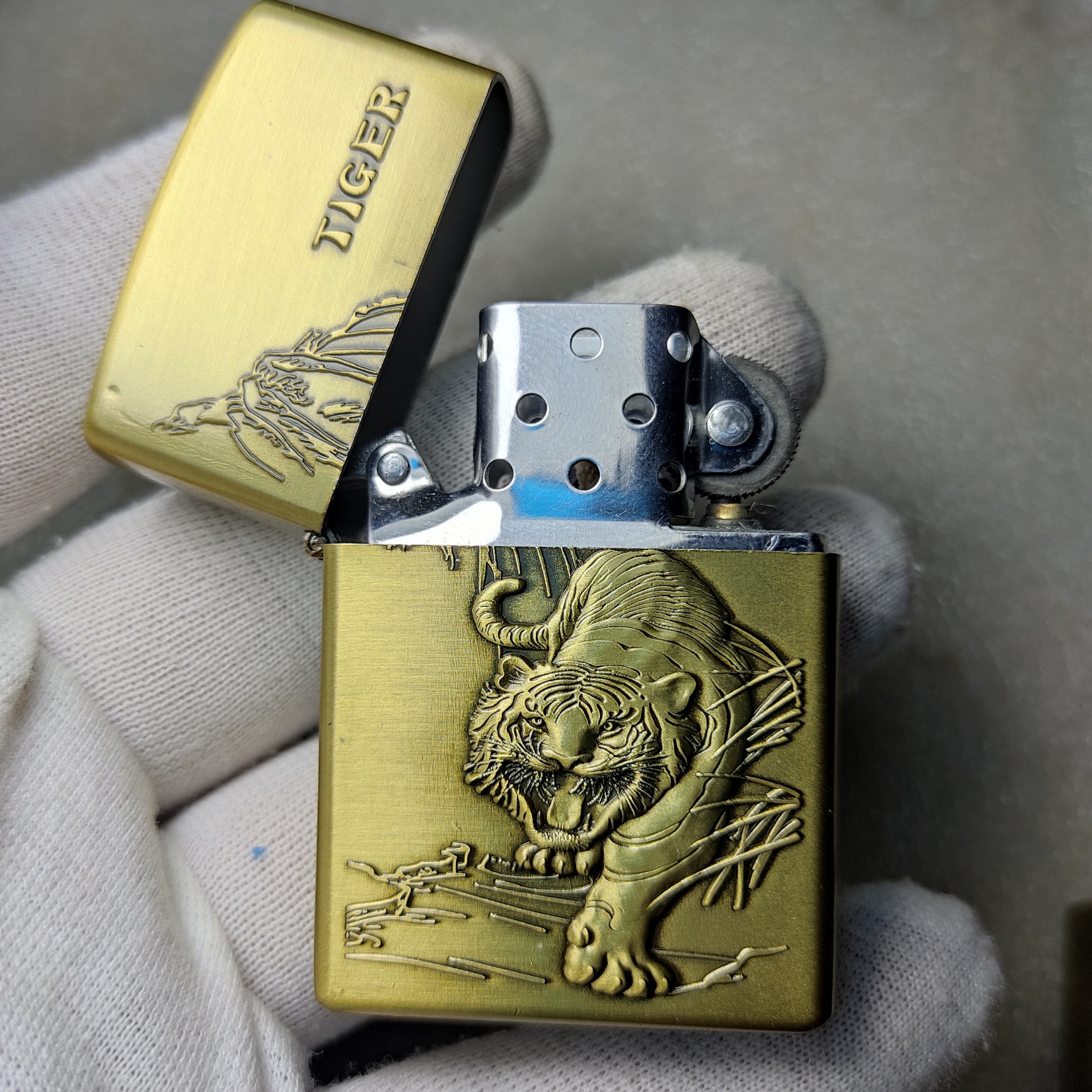 فندک تمام فلزی بنزینی طرح زیپو ببر طلایی باکیفیت