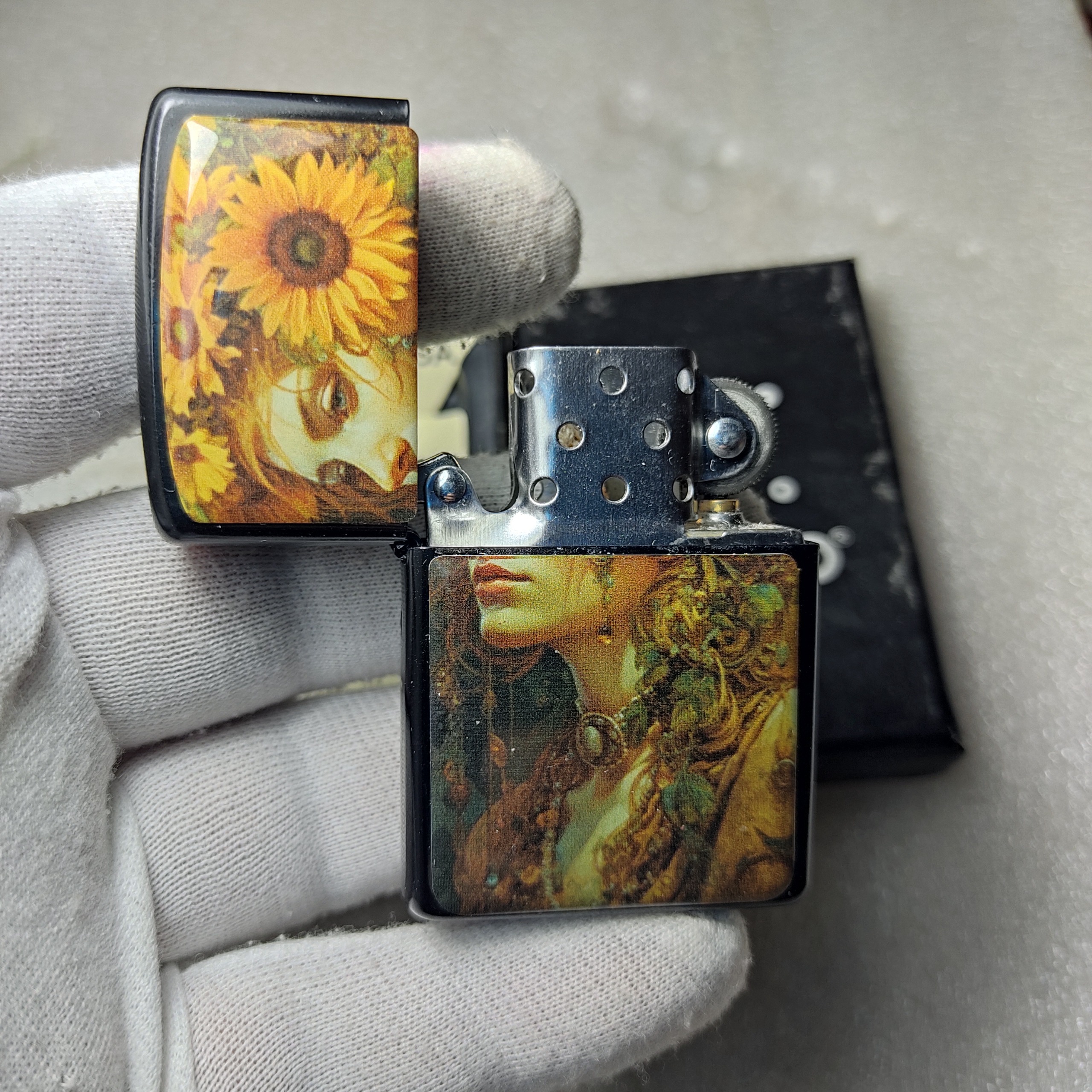 فندک تمام فلزی بنزینی طرح زیپو باجعبه چرم