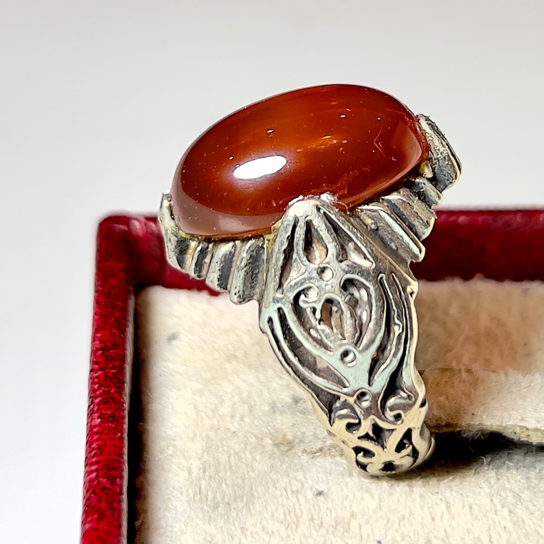 انگشتربی مانند عقیق یمنی سرخ آبدار