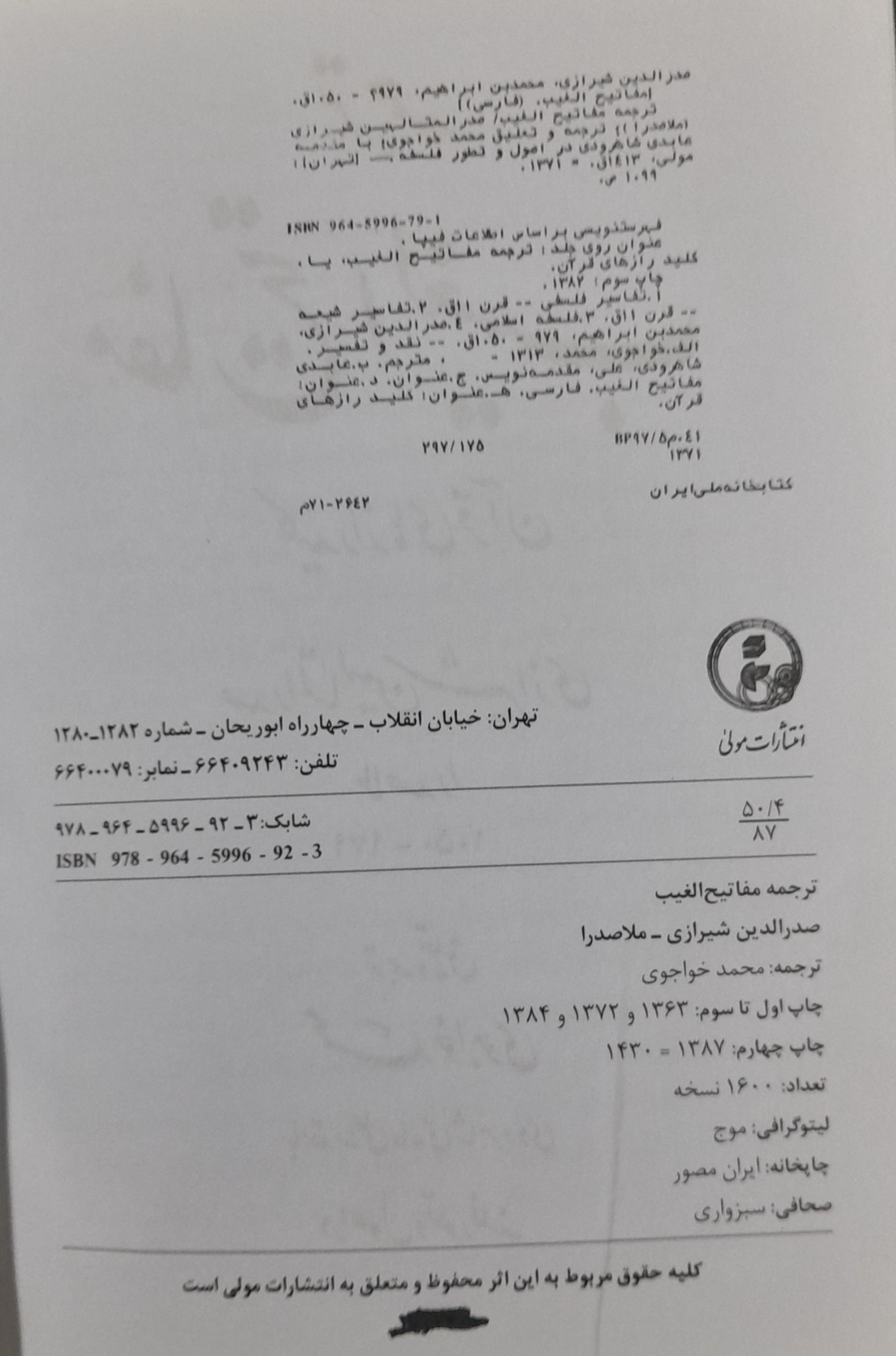 مفاتیح الغیب ملاصدرا، ترجمه و تعلیق محمدخواجوی