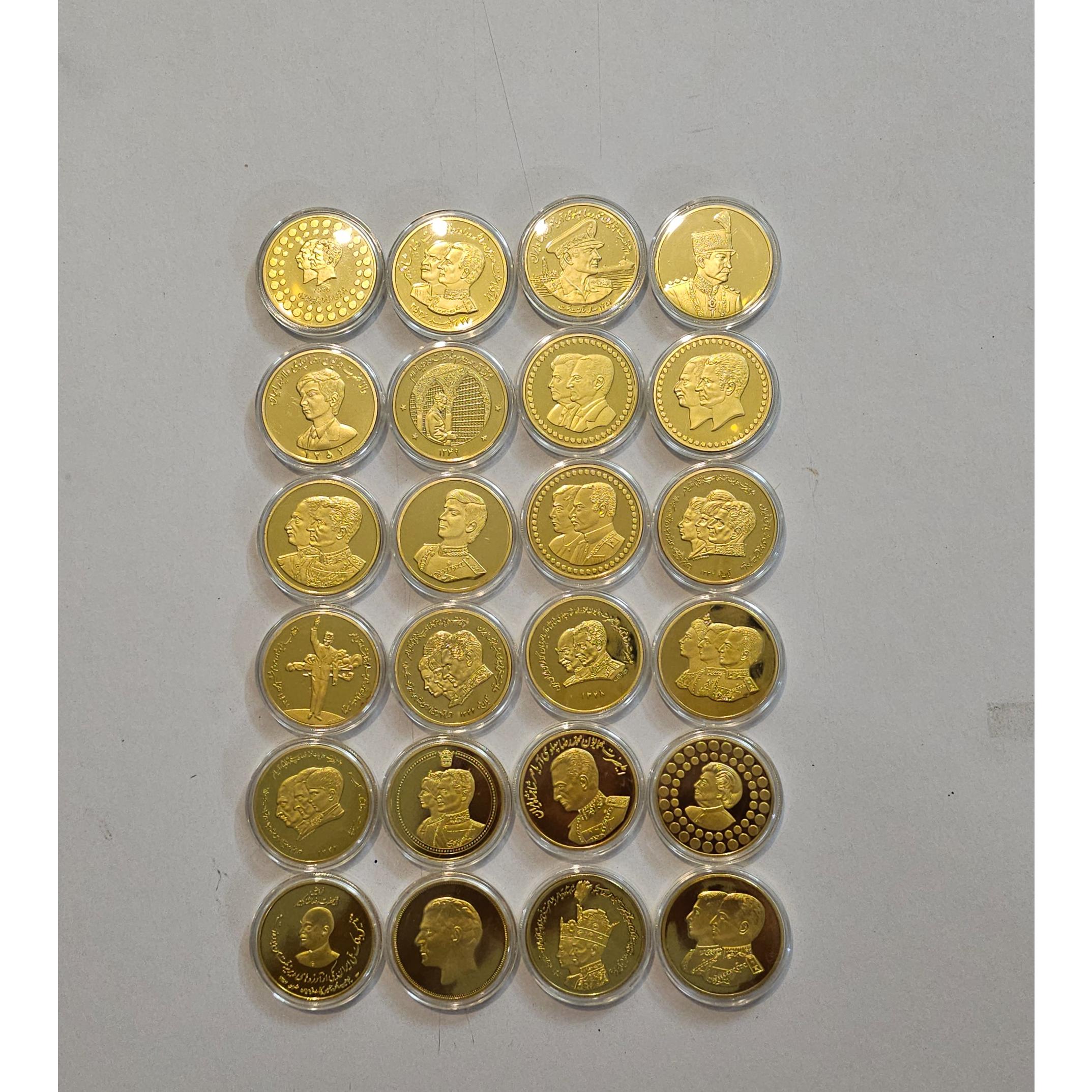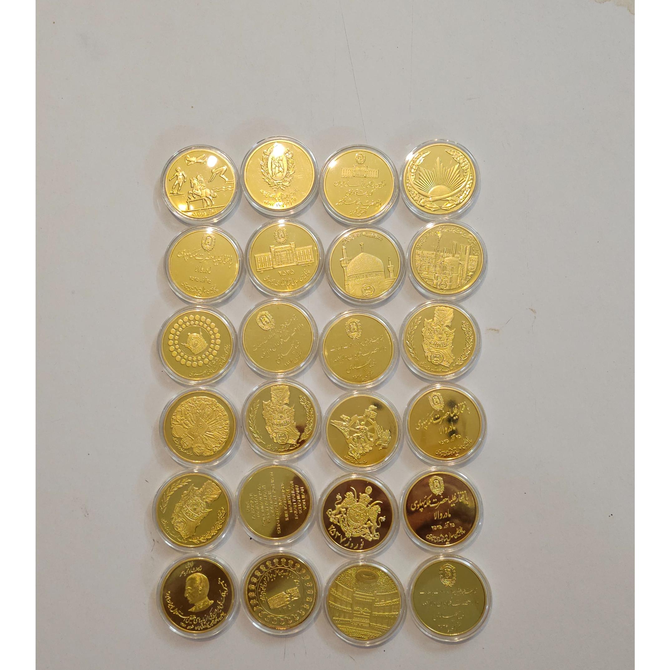 مجموعه 24 عددی سکه یادبودی محمدرضا پهلوی روکش طلا