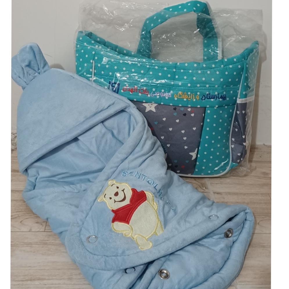 ساک لوازم نوزاد بزرگ و جادار و کاملا نو و آک به همراه پتو قنداقی نوزادی کاملا نو ارسال میشود...