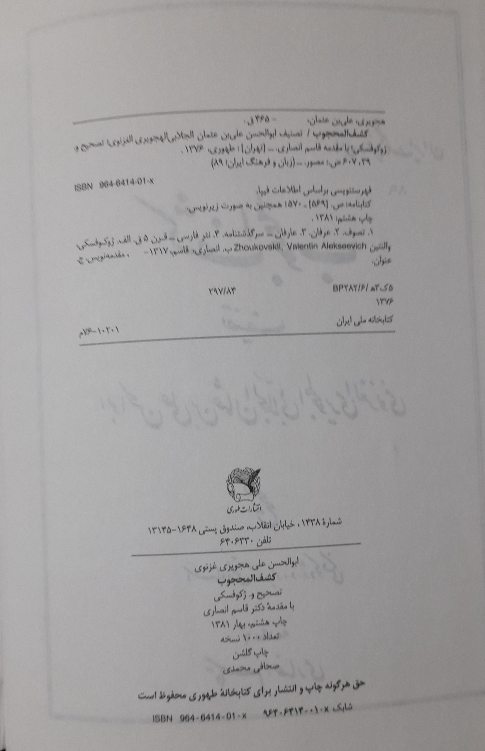 کشف المحجوب هجویری، تصحیح ژوکوفسکی