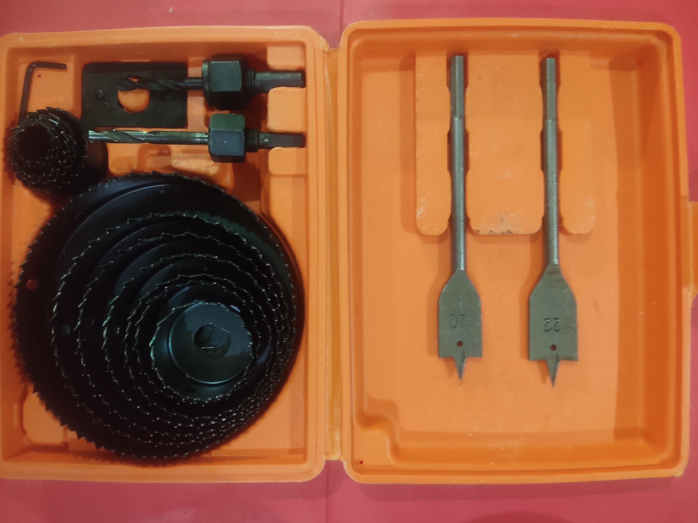 ست 18 پارچه مطابق عکس گردبر با دوسری پایه دریلی و دو عدد مته چوب 20 و22 وسایل لوازم