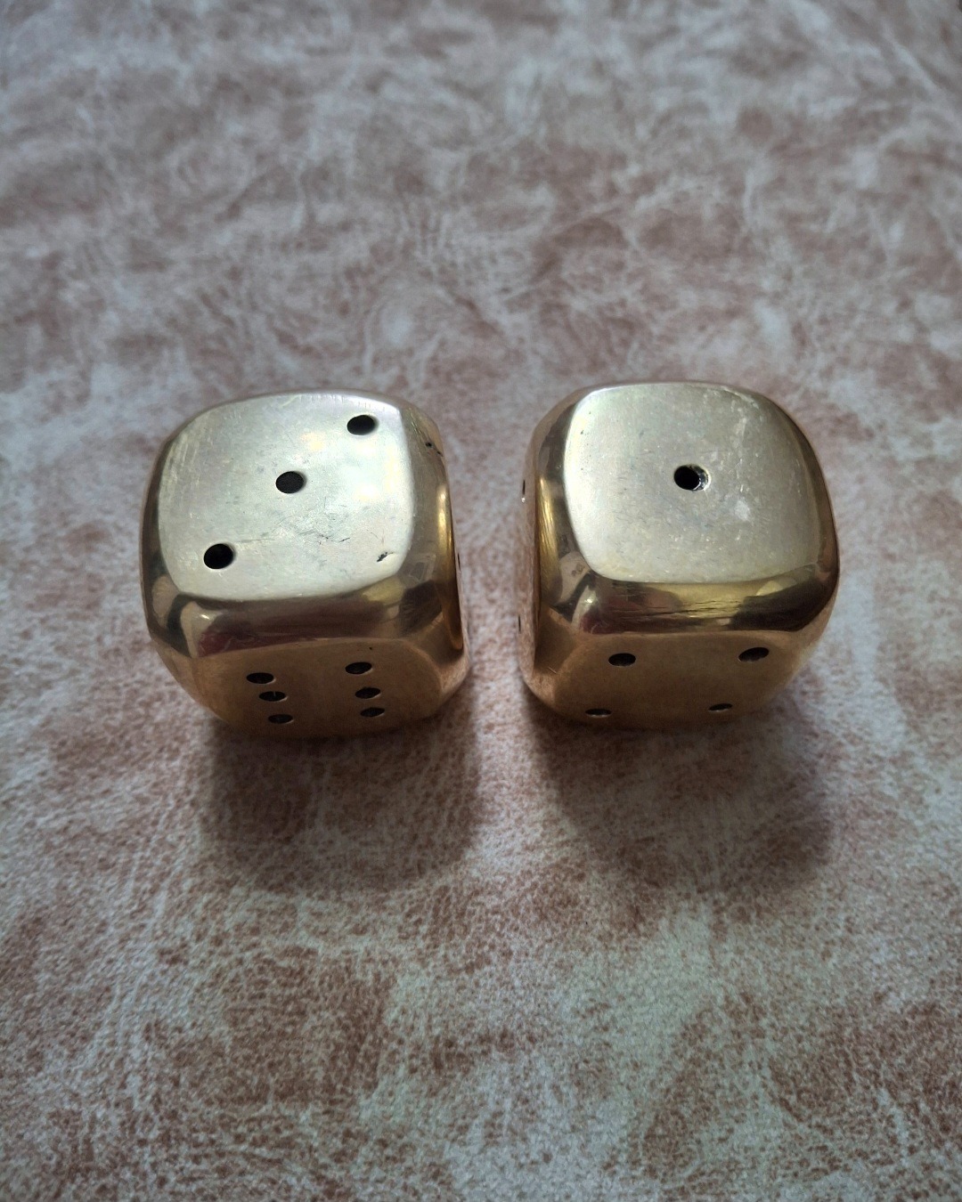 یک جفت تاس برنزی خارجی قدیمی وزن جفت 200 گرم بدون مشابه داخل ایران قیمت برای جفت تاس ها هست