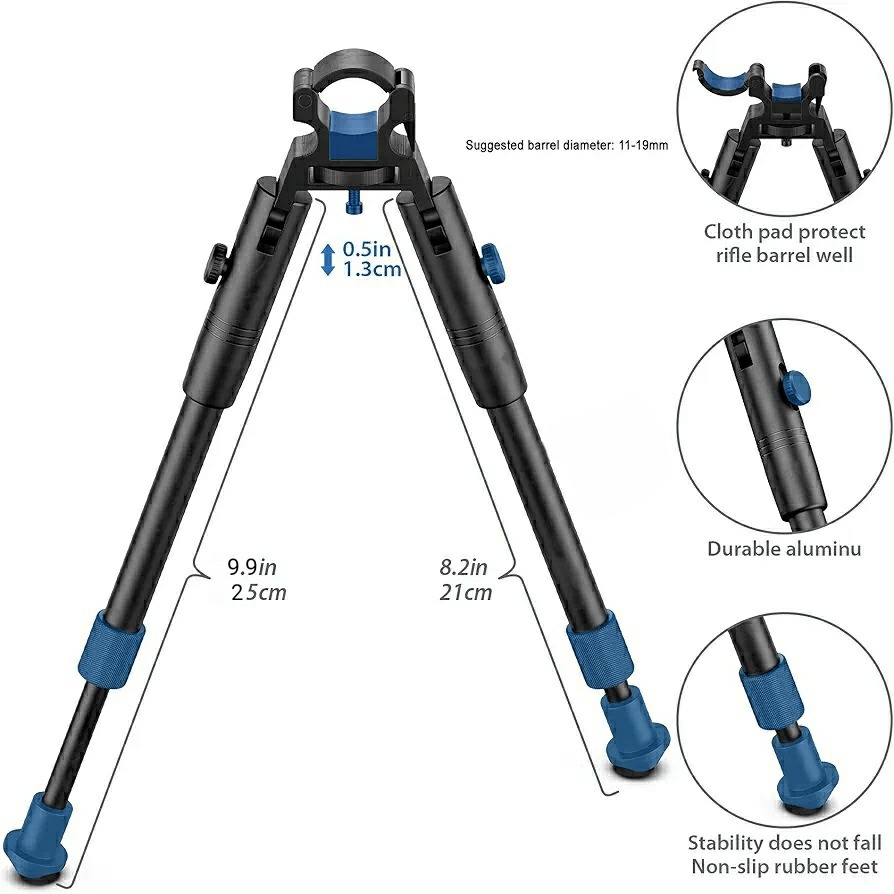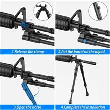 دوپایه تاکتیکال سلاح با قابلیت نصب روی لوله سلاح، مناسب نصب روی انواع سلاح های شکاری گلوله زن، خفیف، PCP و تفنگ های بادی.