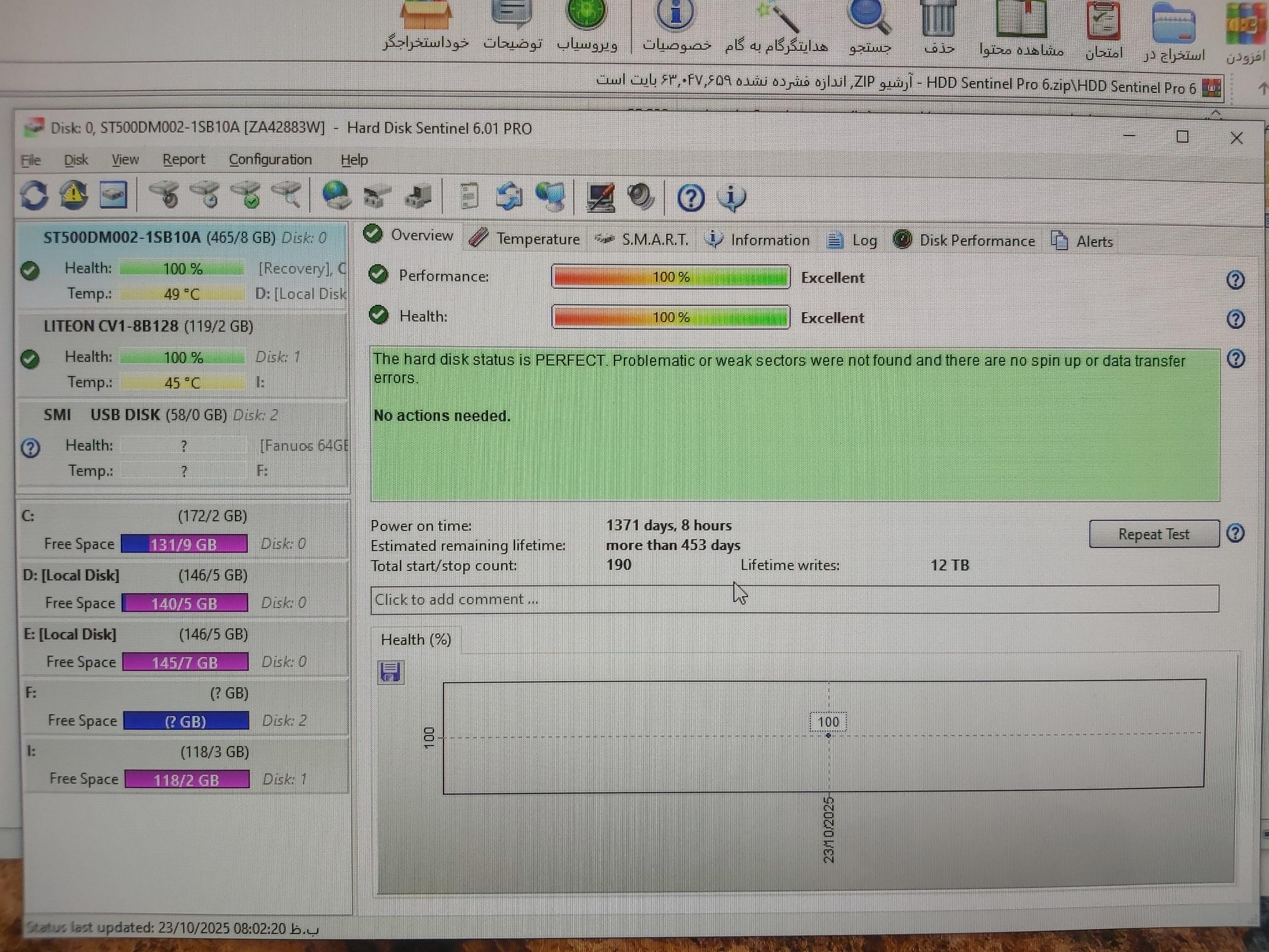 تست سلامت با نرم افزار معتبر انجام شده و عکس موجود هست