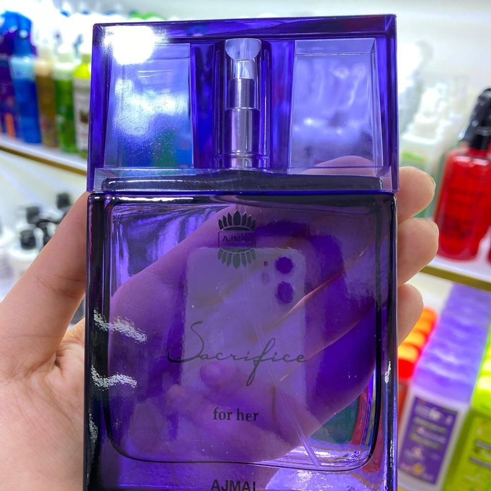 ادکلن اجمل ساکرفایس یک عطر زنانه با رایحه گلی است که مخصوص مهمانی و پارتی هاست، این ادوپرفیوم نخستین بار در سال 2007 و توسط برند اجمل روانه بازار شد.