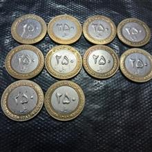 سکه 25تومنی دورنگ درحدنو   10عدد غیر از سال 80
