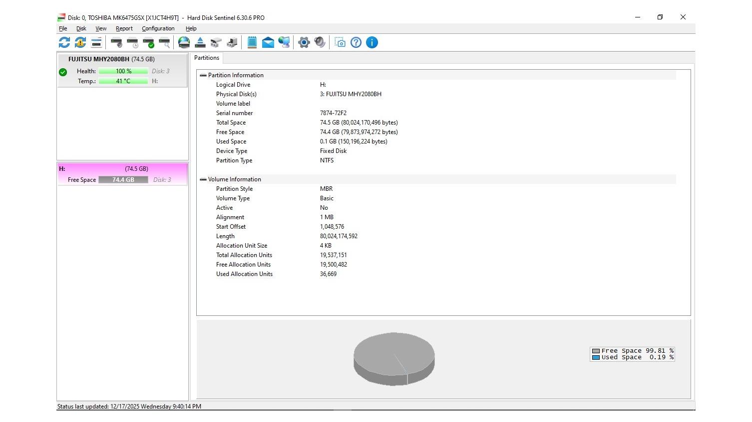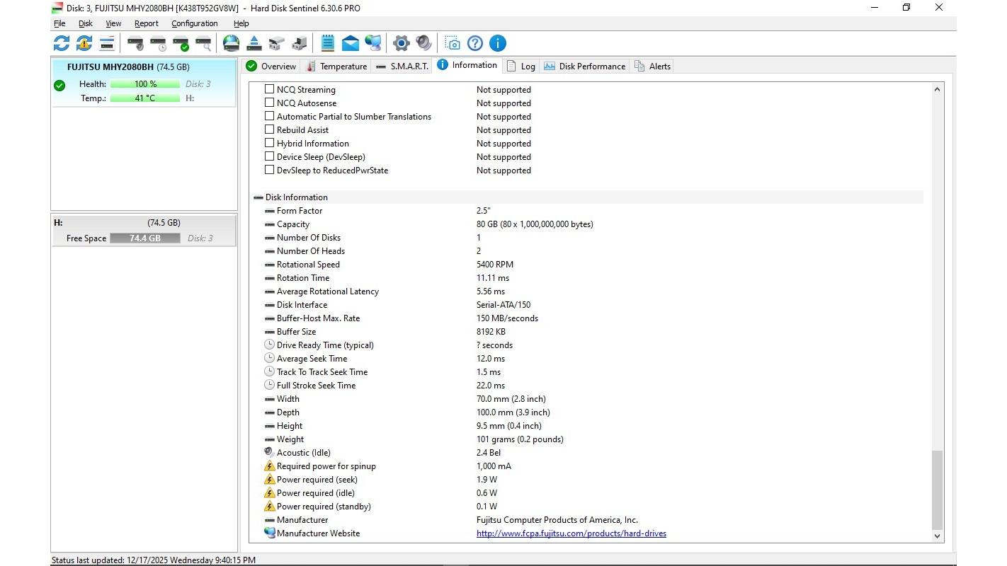 مارک فوجیتسو ظرفیت 80 گیگابایت