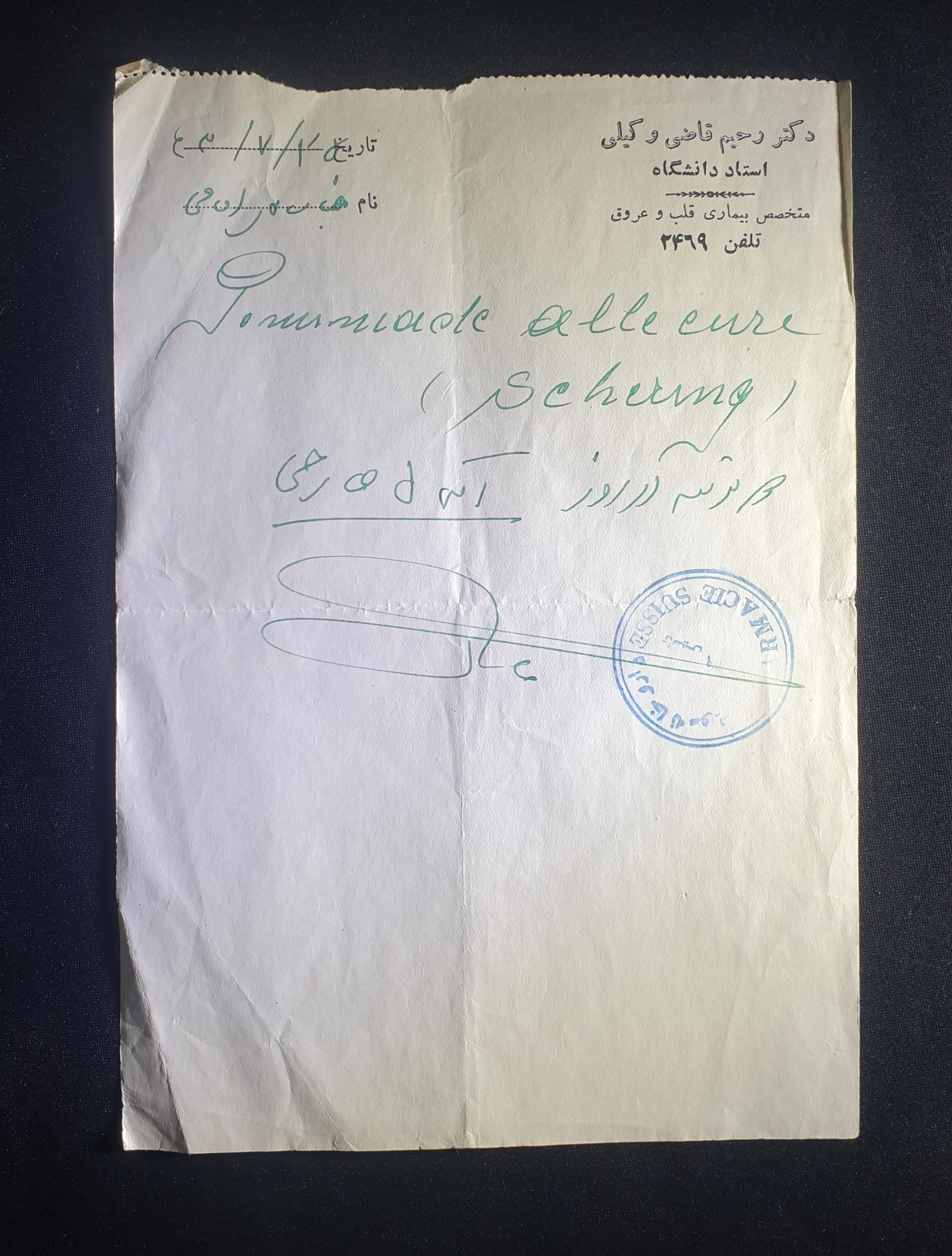 سر برگ ویزیت دکتر رحیم قاضی وکیلی به تاریخ 1343