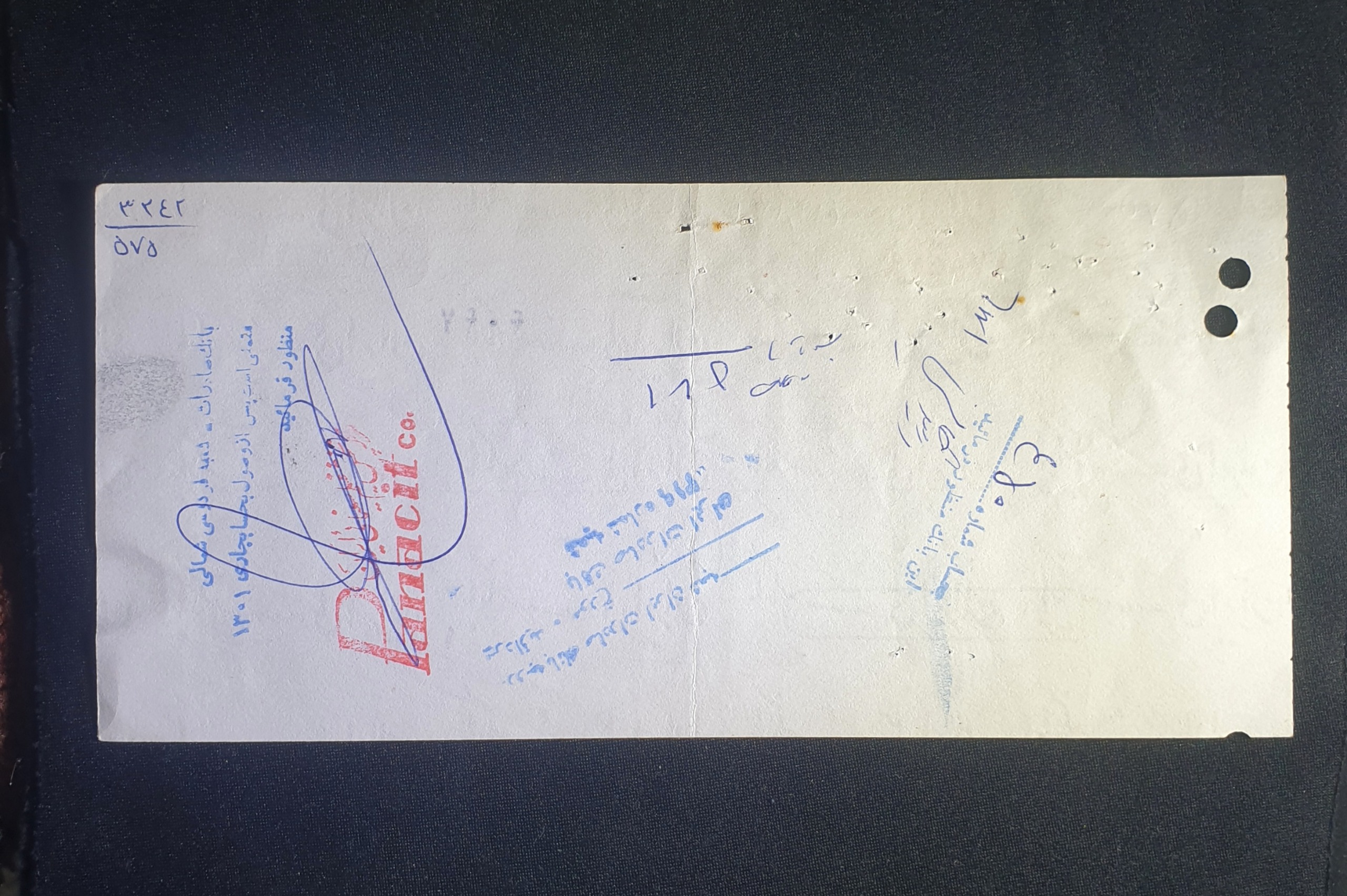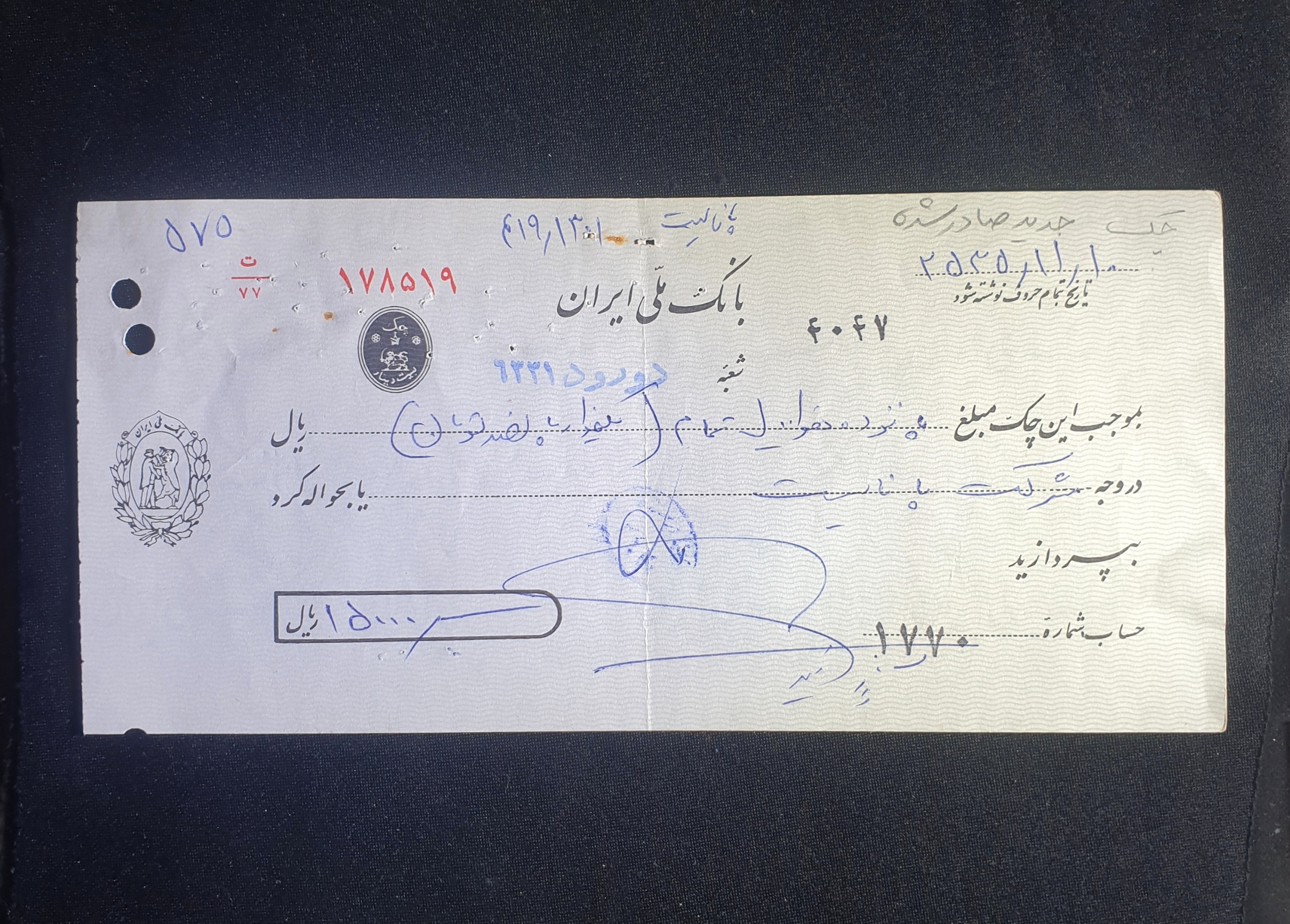 چک پانزده هزارریال پهلوی شعبه دورودلرستان بانک ملی