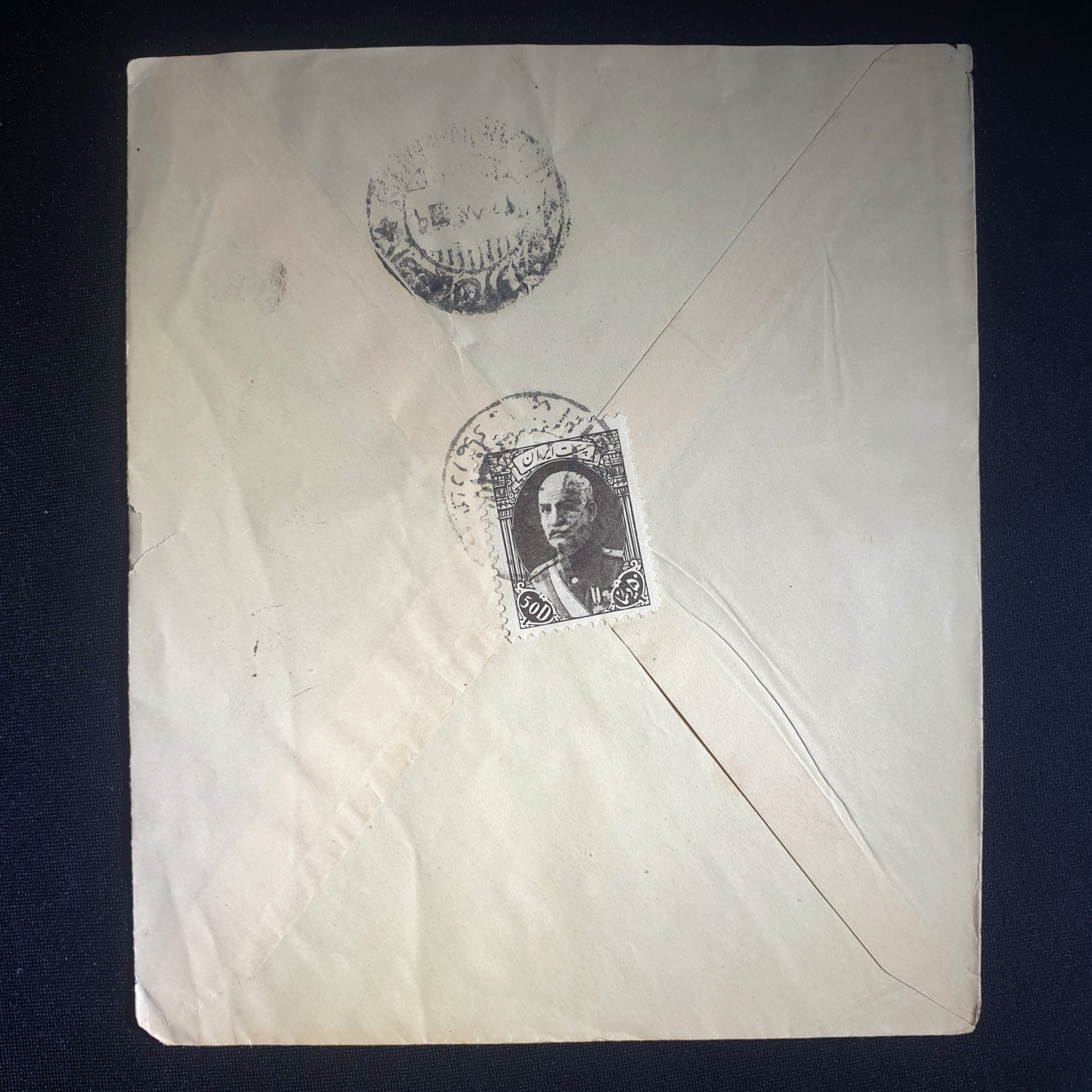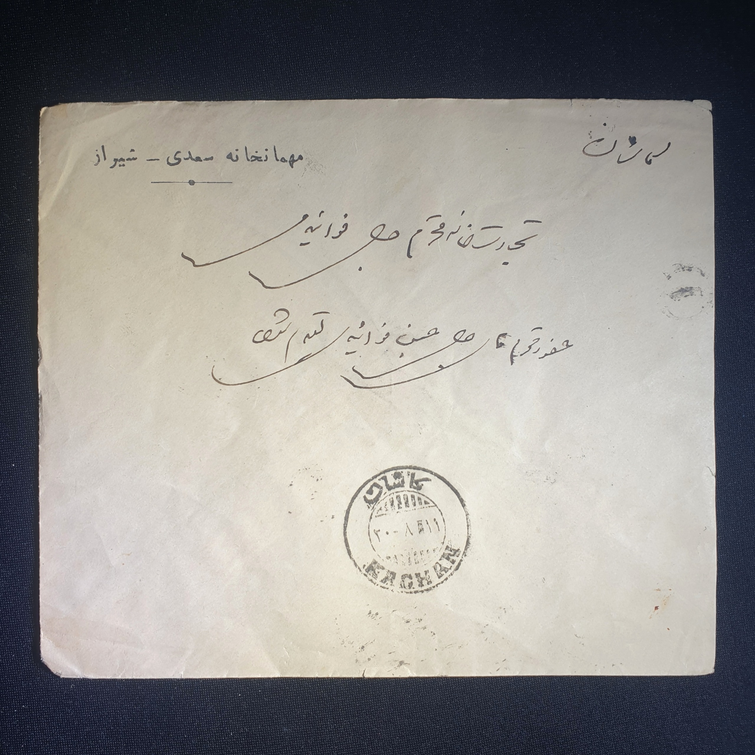 پاکت مهمانخانه سعدی شیراز به کاشان تمبر چاپ فرانسه