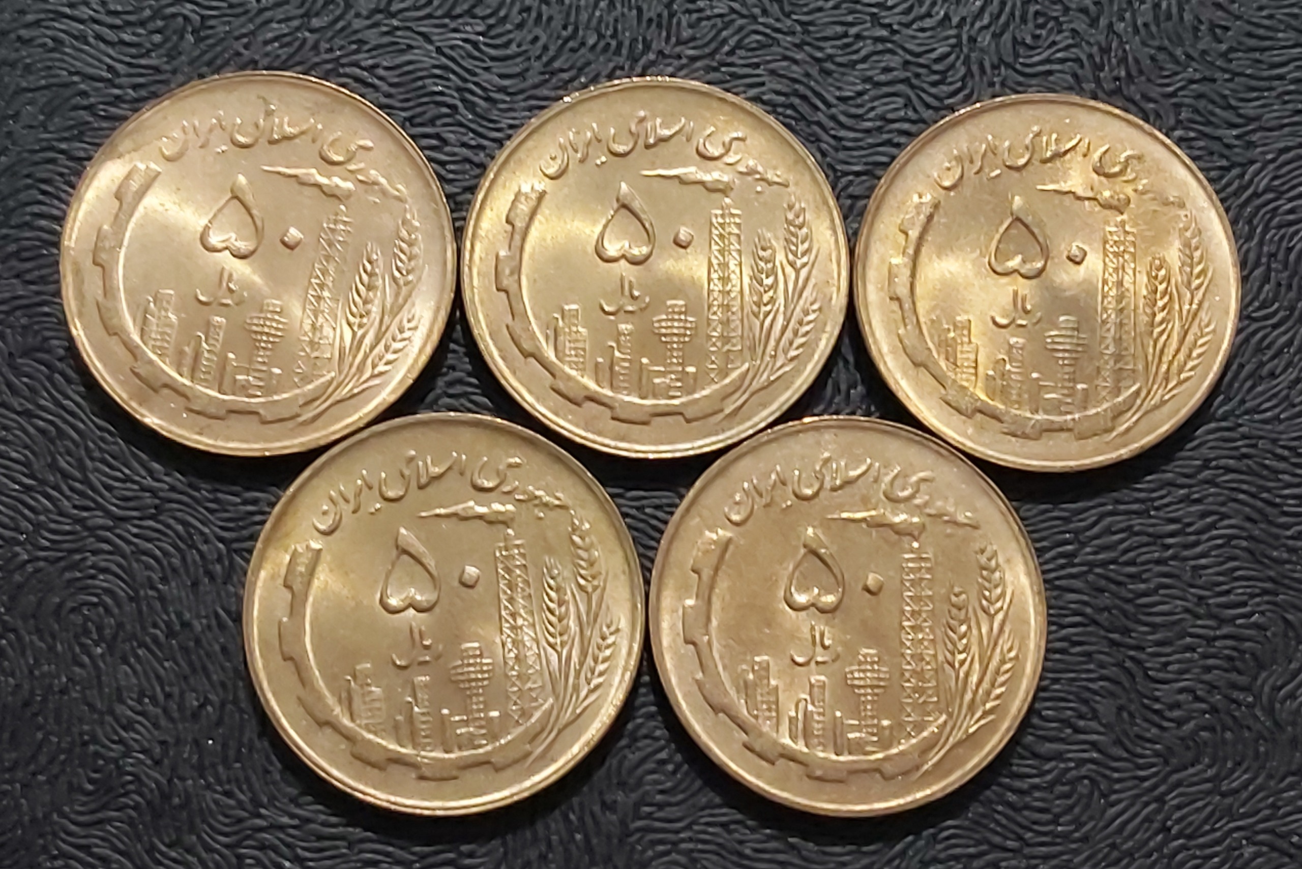 5 عدد 5 تومنی مسی 1361 بانکی طبق تصویر میباشند