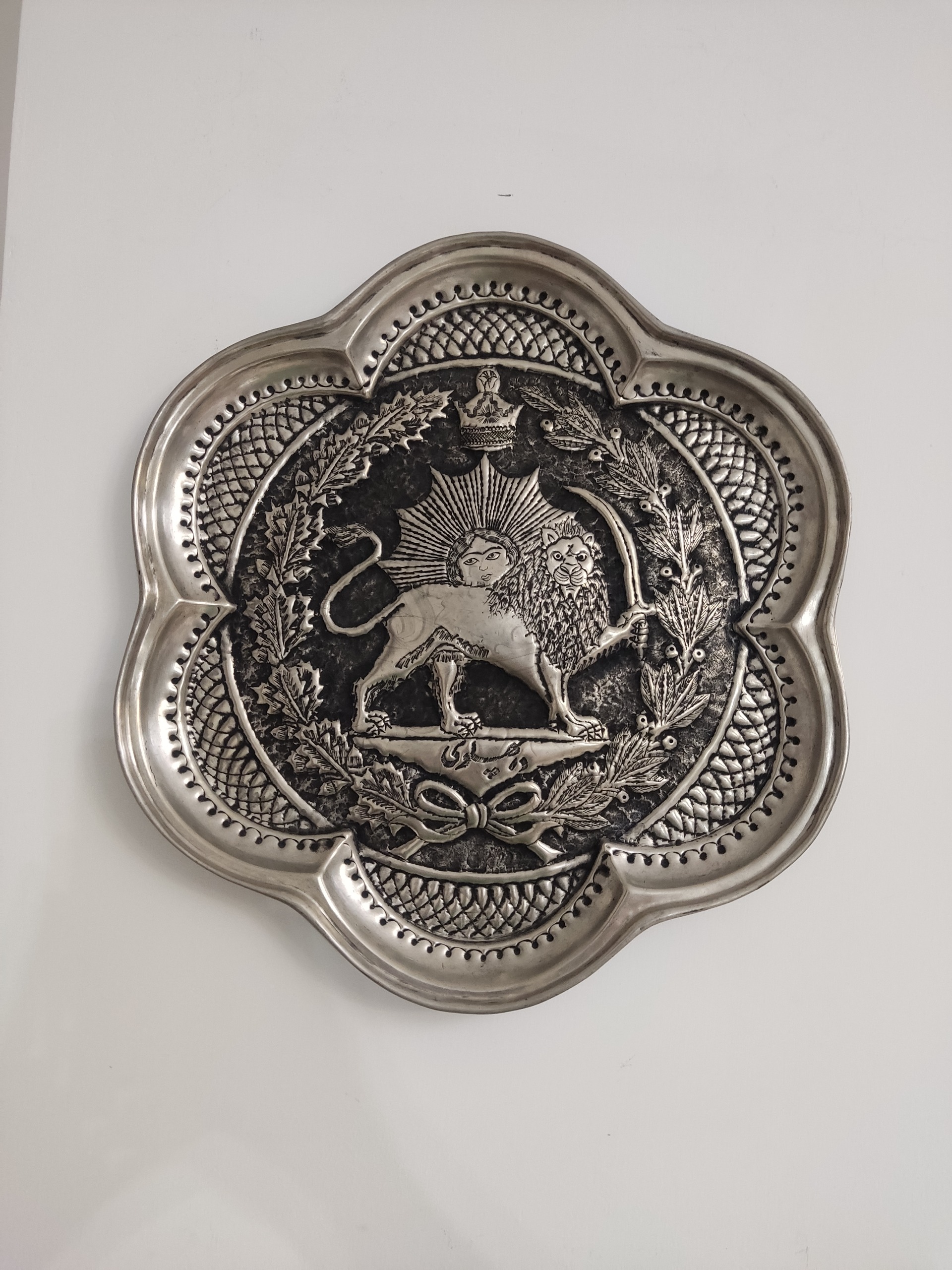سینی یا دیوارکوب معروف به شش قل از جنس ورشو قلم برجسته تماماً قلم دست به قطر 34 سانتیمتر مطابق تصویر خواهشمندم از دیگر کالاهای اینجانب دیدن فرمایید.