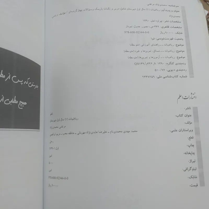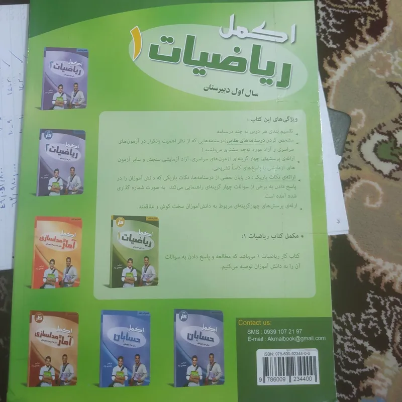 کتاب اکمل ریاضیات سال اول دبیرستان انتشارات اعلم تالیف مرتضی محمدی نژاد چاپ سال 1390 ، 332 صفحه، جامع ترین مجموعه کتاب تست و درسنامه