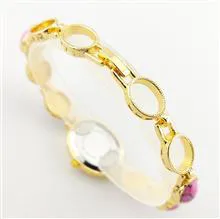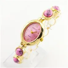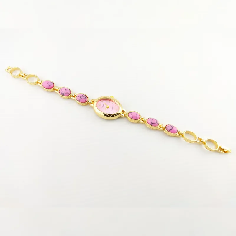 بدنه و بند استیل فلزی طلایی با مهره های ماربل صورتی