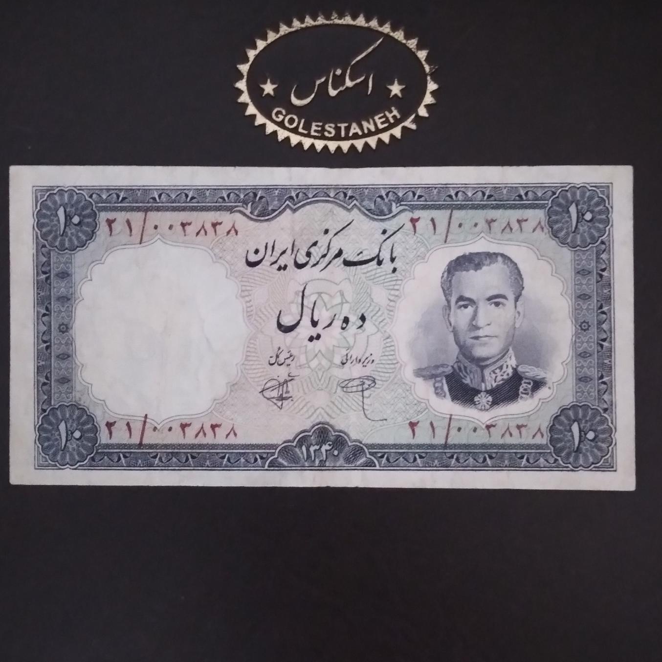 10 ریالی 1340 باشماره زیبا نیمه رند