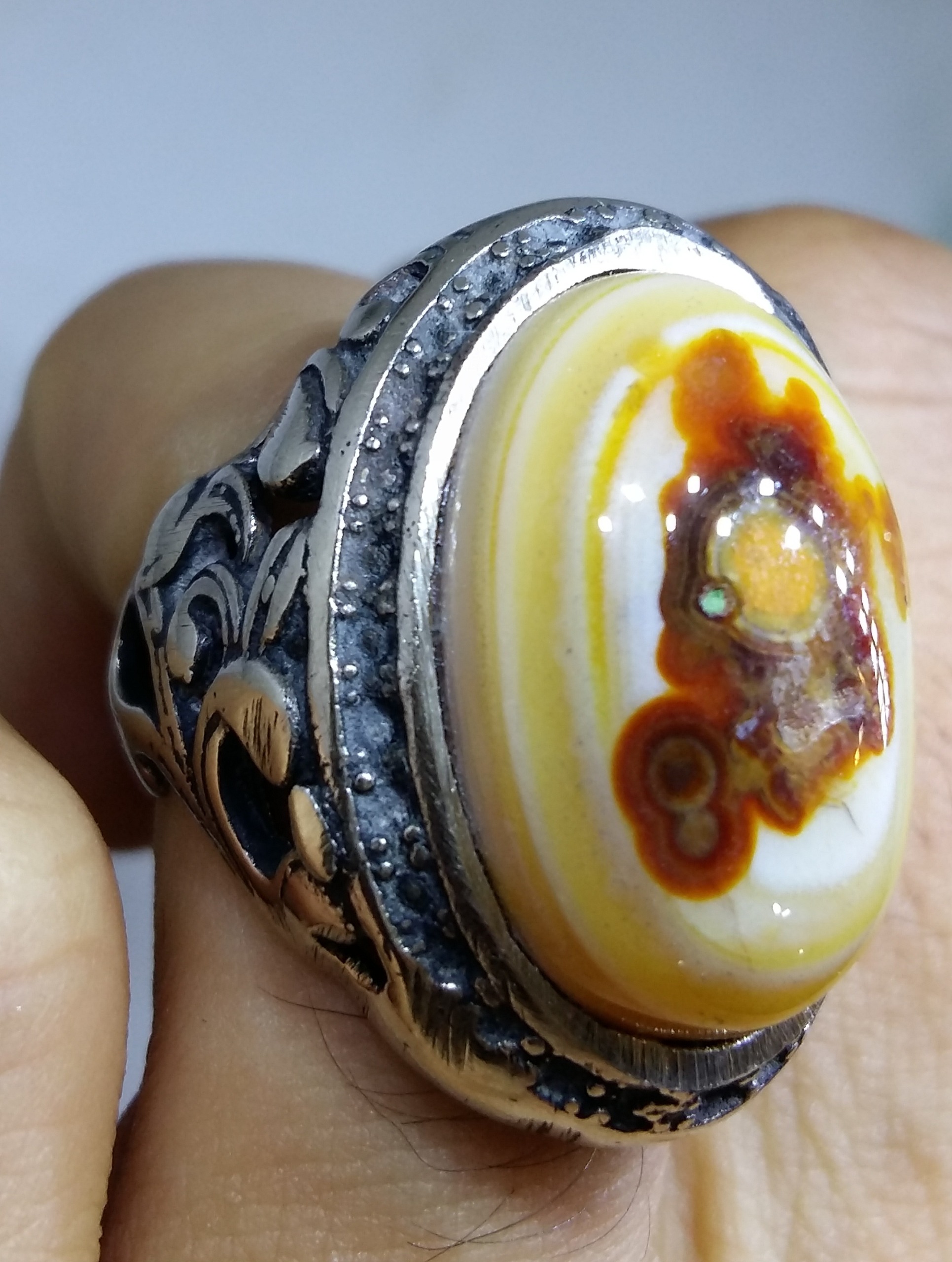 4_انگشتر فوق از لحاظ سنگ داری سنگ کاملا معدنی و طبیعی هست و بشرط اصالت تقدیم میشود همچنین رکاب انگشتر نقره عیار840 سیلندری با کیفیت مطلوب میباشد.