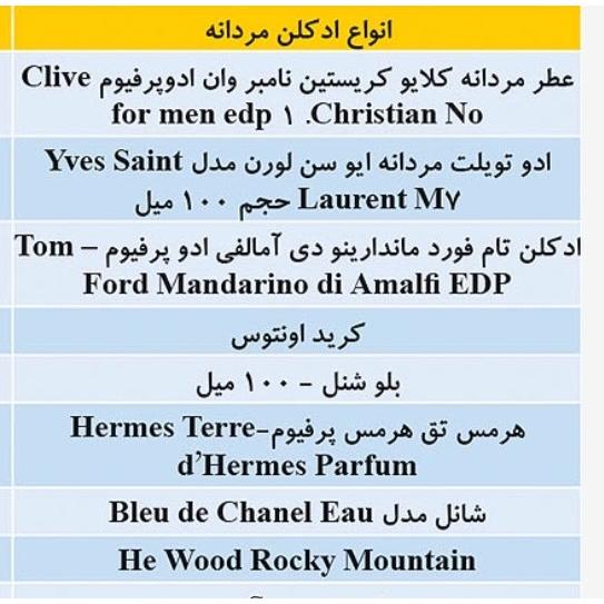 عطراصلی تمام برندها دنیا زیر فی100cc