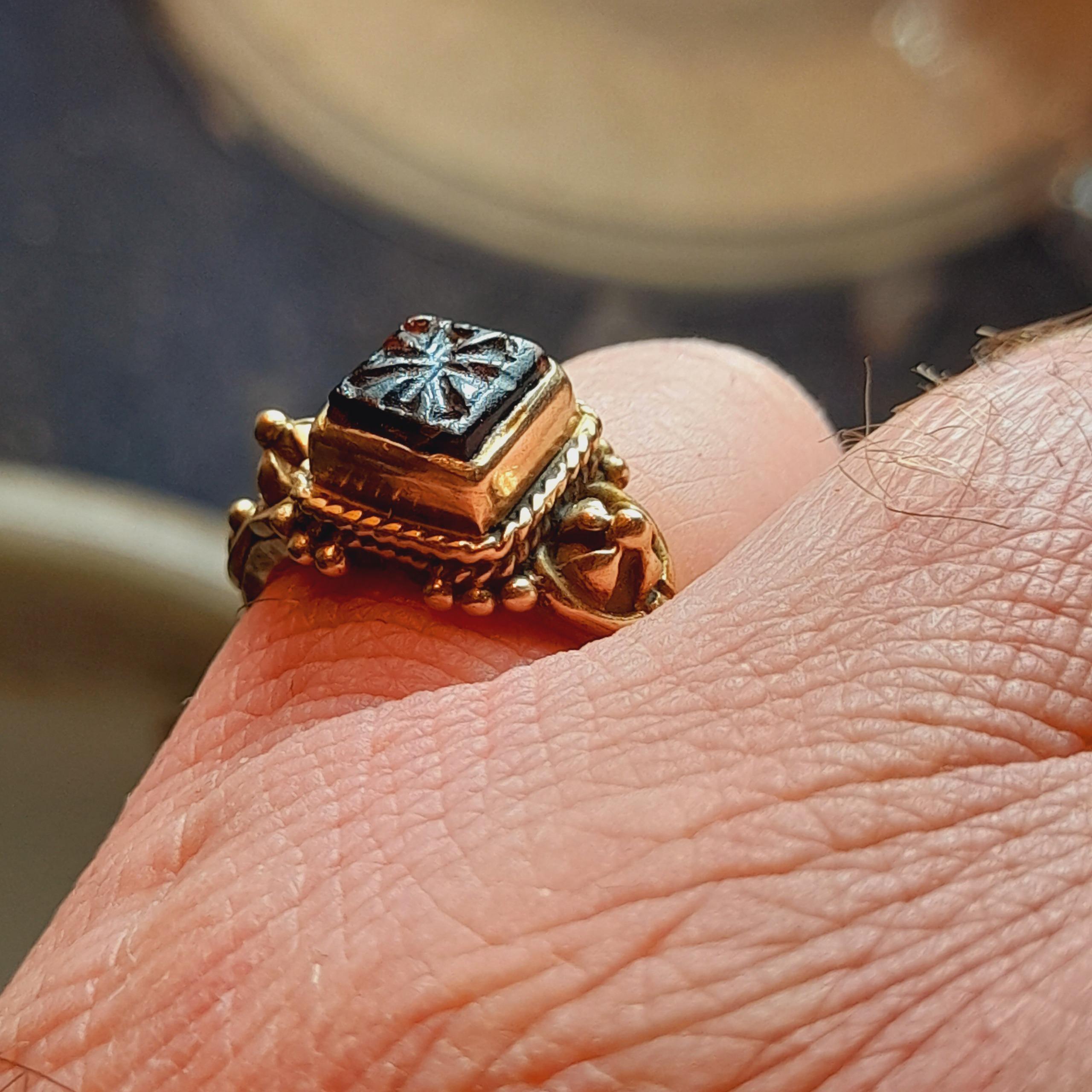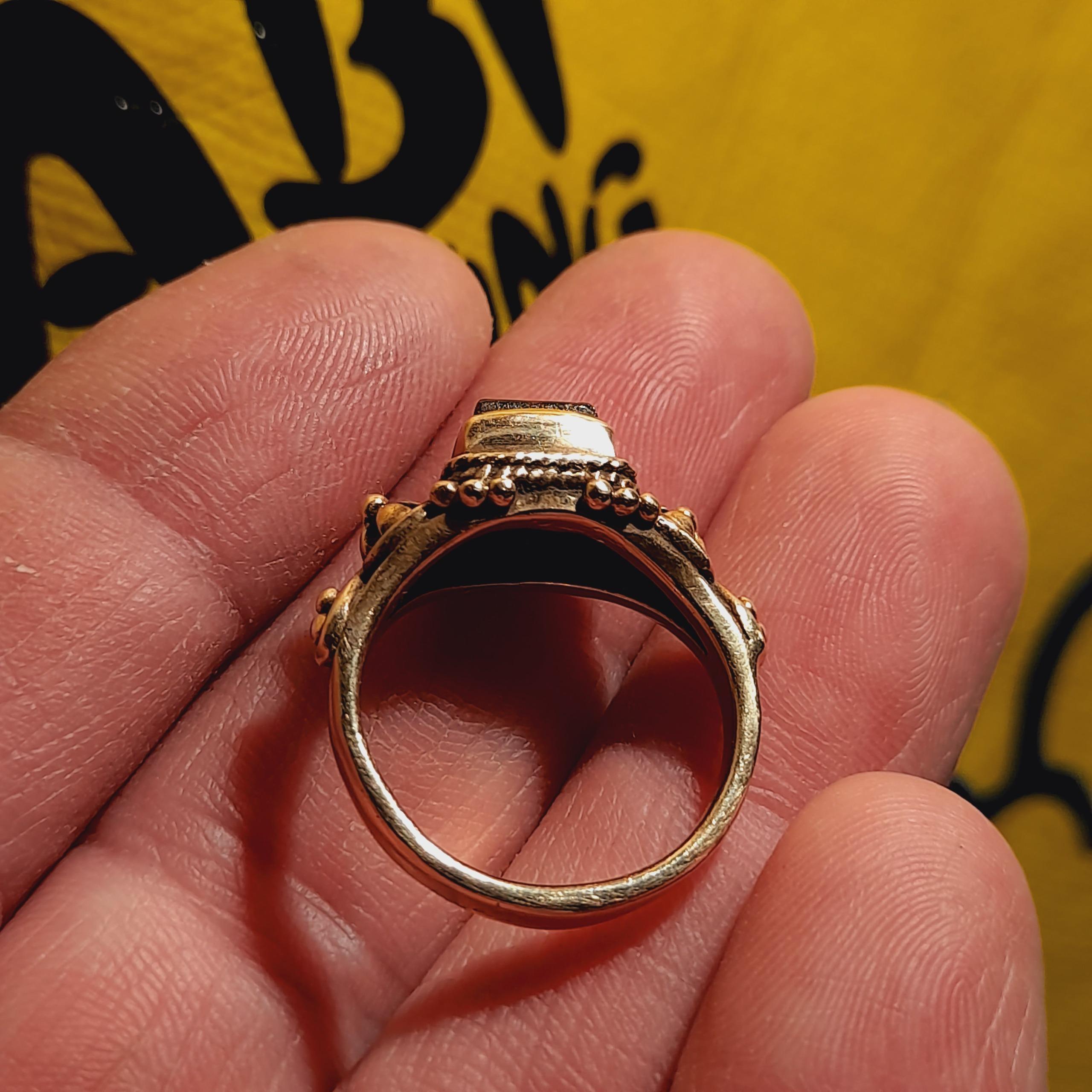 انگشترحرز دار و نشاندار یاقوت سیلان حالا هر دوستی خواست بخره و براش مهم بود عکس حرز داخلش میفرستم براش جنس انگشتر دقیق نمیدونم ولی به احتمال زیاد برنج باشه