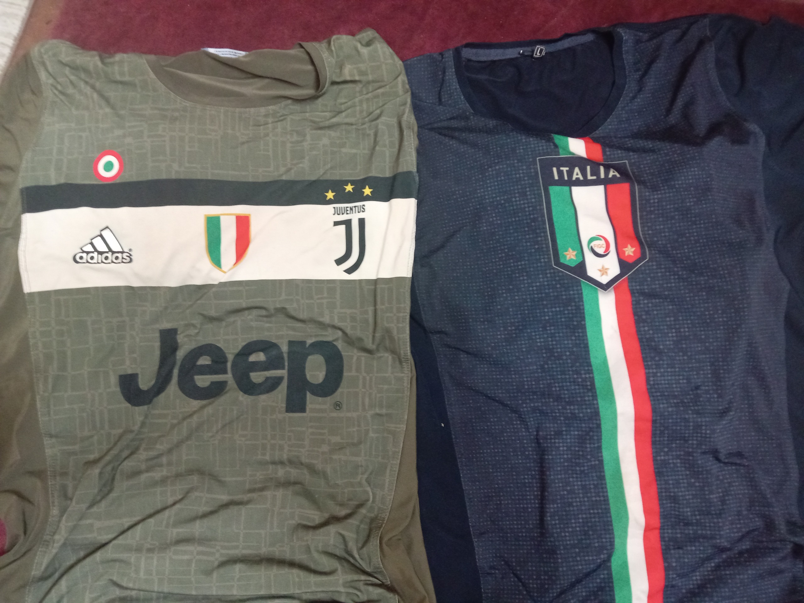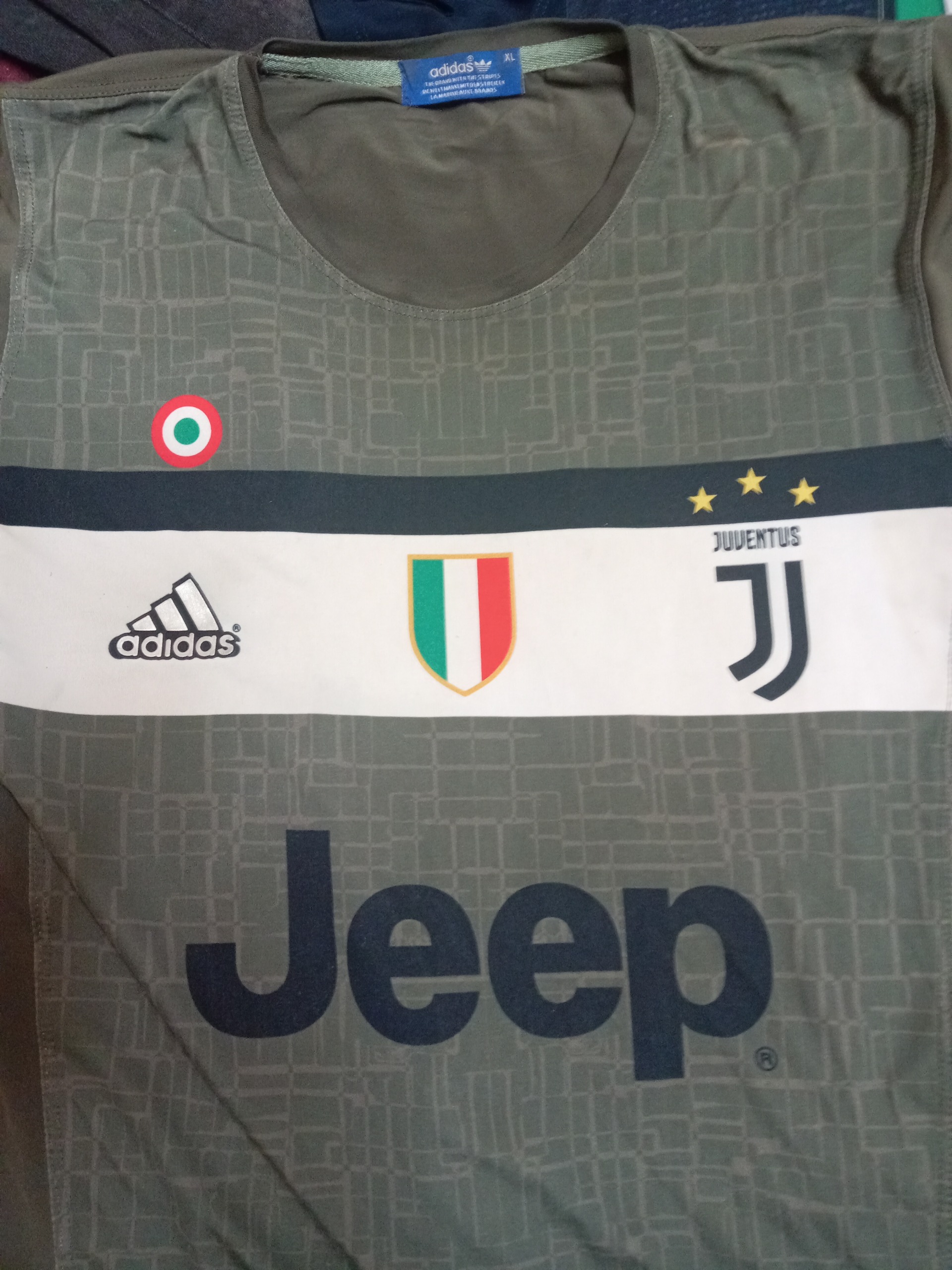 دو عدد تیشرت آدیداس اصلی جنس player اصلی هم ذز گرما واکنش نشون میده و خنگ هم دز سرما جنس تمام کش لمع تور و براق لیز جنس اش آدیداس استوک سر عدلی اش از سوئد آمده برای ورزش و خیابون فوق العاده ای صورمع ای لارج و سبز لجنی یوونتوس هم  xl