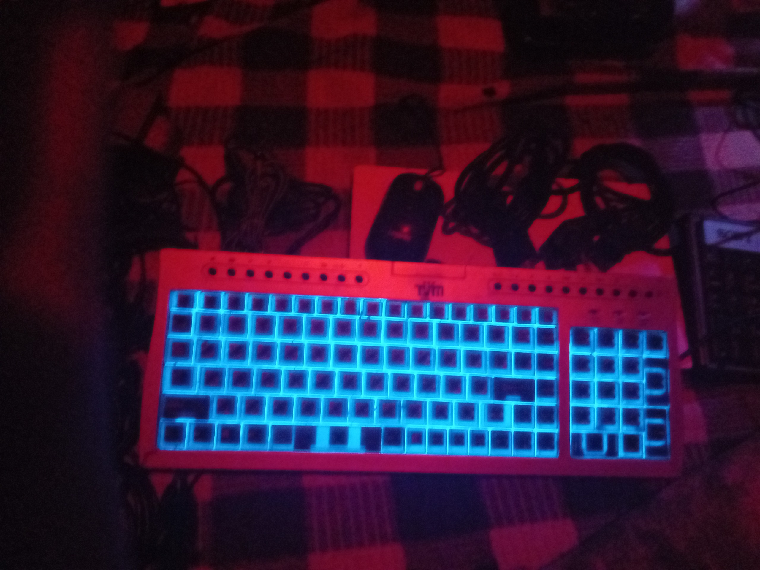 یک عدد کیبورد tvm ژله ای چراغ دار نیونی USB به همراه یک عدد مینی کیبورد ماشین حسابی SONY برای صندوق دار ها حساب کتاب سالم بودن معیوب بودن کوچیک رو نمیدونم جفتش باهم میدم ولی ژله ای چراغ دار سالم مرتب کار شیک