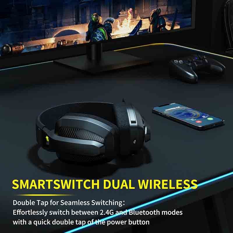 حالتهای بیسیم دوگانه: به طور همزمان به دو دستگاه متصل شوید و به طور یکپارچه بین آنها جابجا شوید. از بازی بیسیم همزمان و ترکیب صدای موبایل، همه در کنترل شما، لذت ببرید.