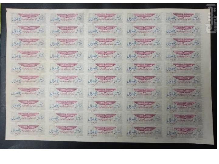 ورق کامل بلیط کمیاب وارزشمند 50 ریال سری سنبل