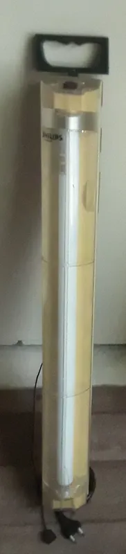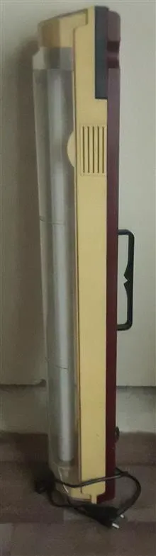 طبق تصویر.سیمشو میزنی به پریز روشن میشه.ولی شارژرش نمی دونم چرا یه مدته کار نمی کنه.کلا همین طبق تصویر.شیشش هم یه ترک کوچولو در پائین داره زیاد مشخص نیست.مهتابیشم سالم. و با دوشاخه بدون شارژ روشن میشود. احتمالا باتری شارژش مشکل داره.طبق تصاویر .