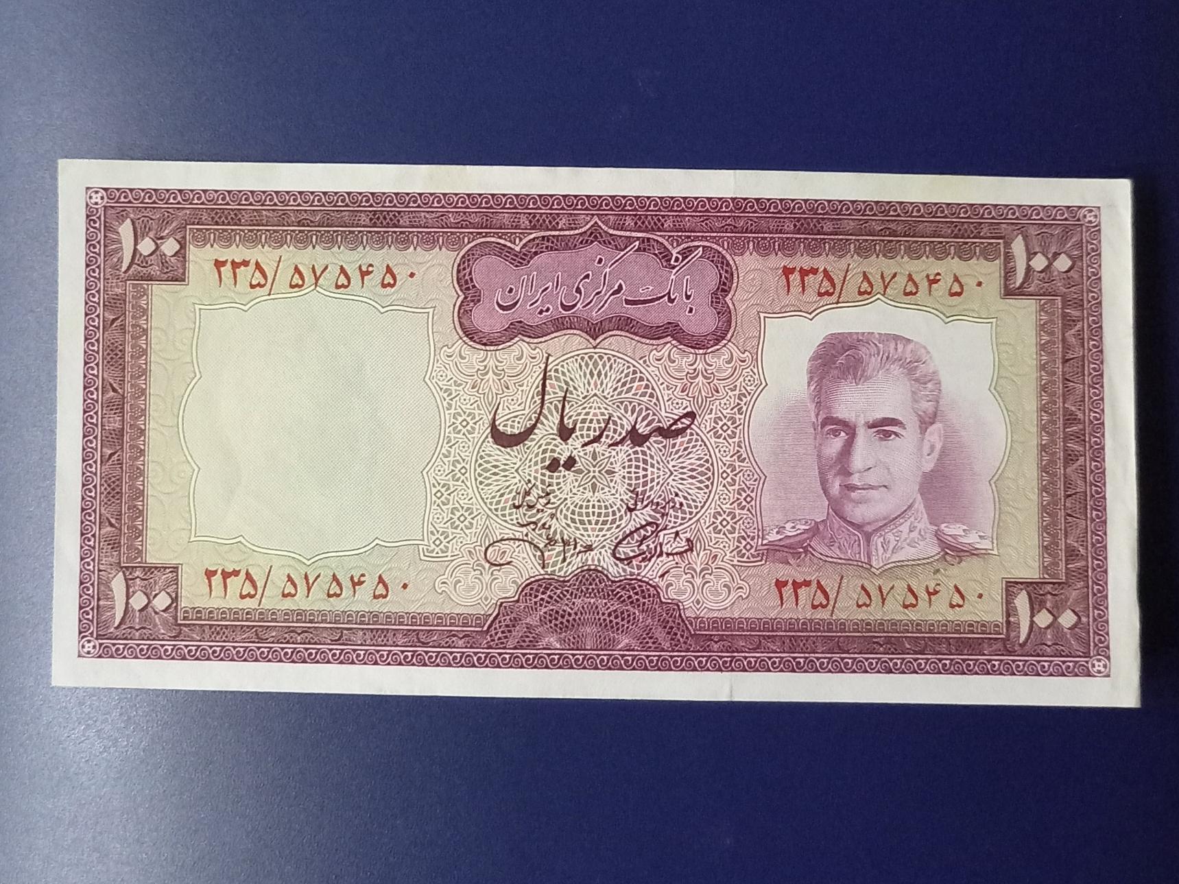اسکناس ارزشمند 100 ریال با شماره بسیار خاص و زیبا .