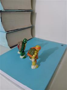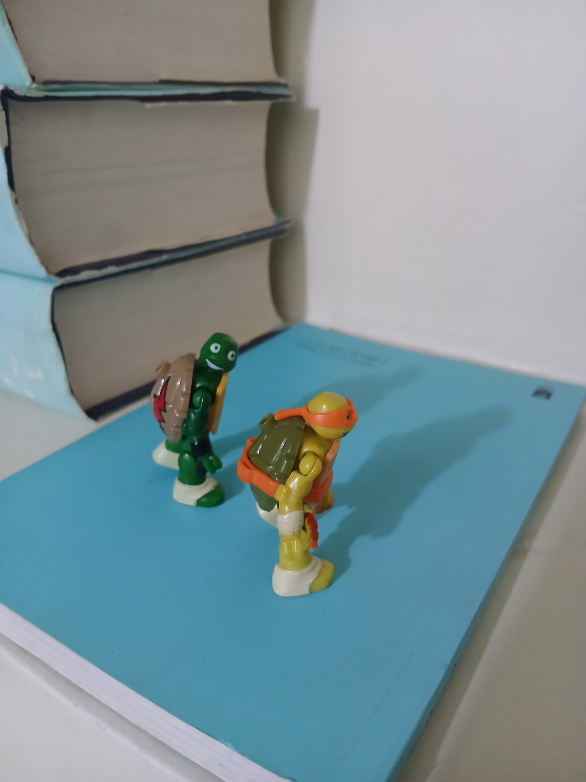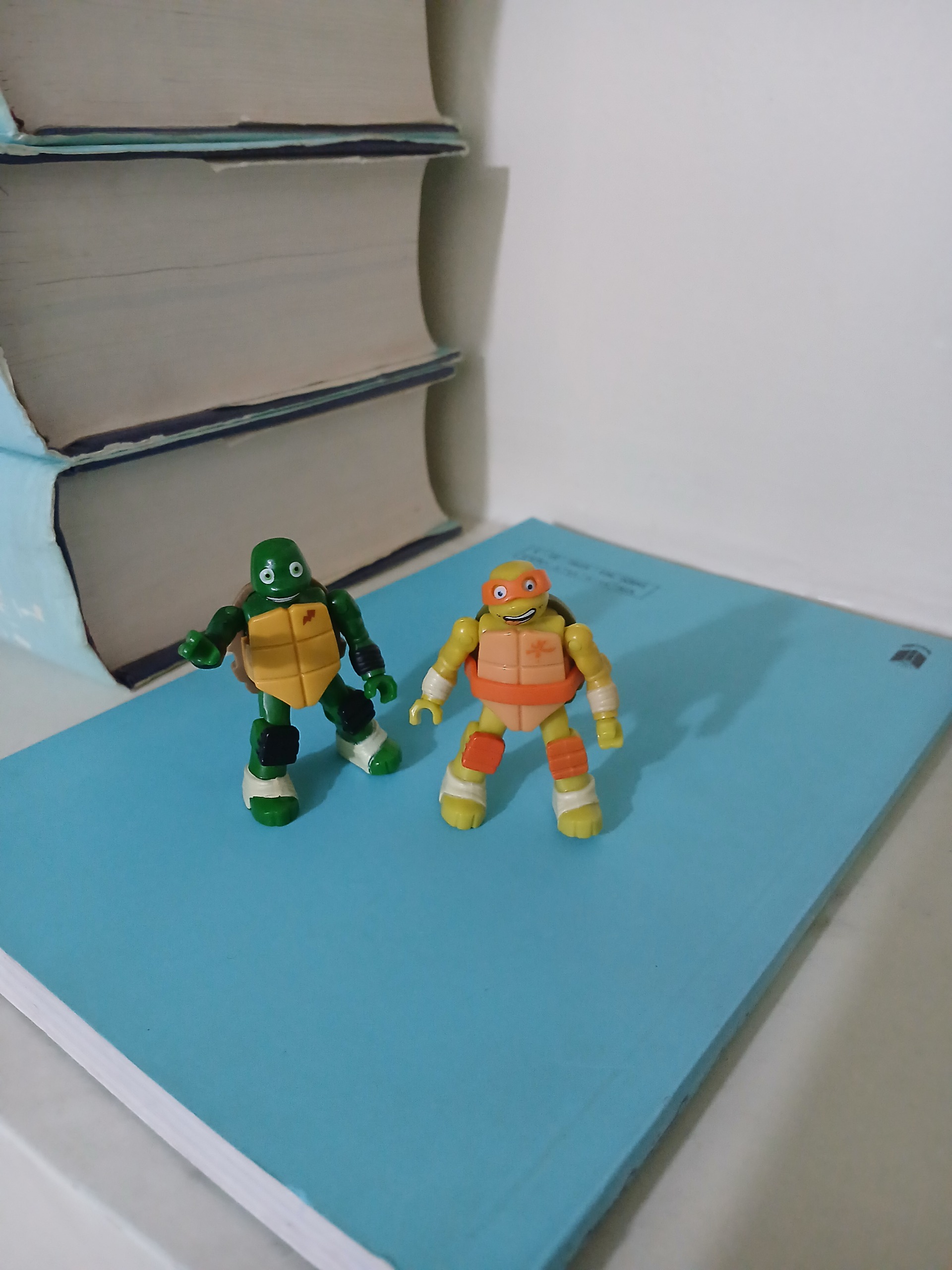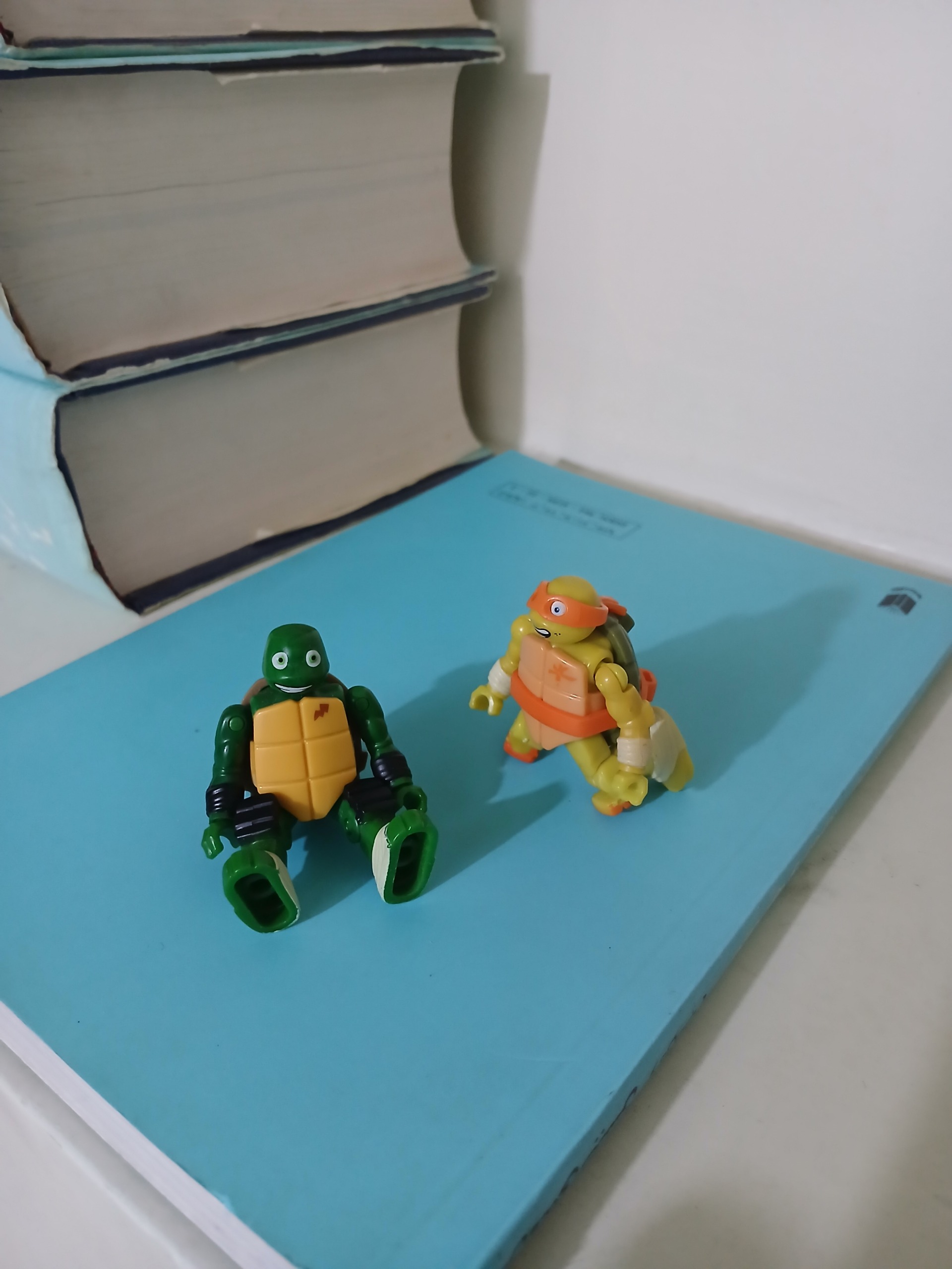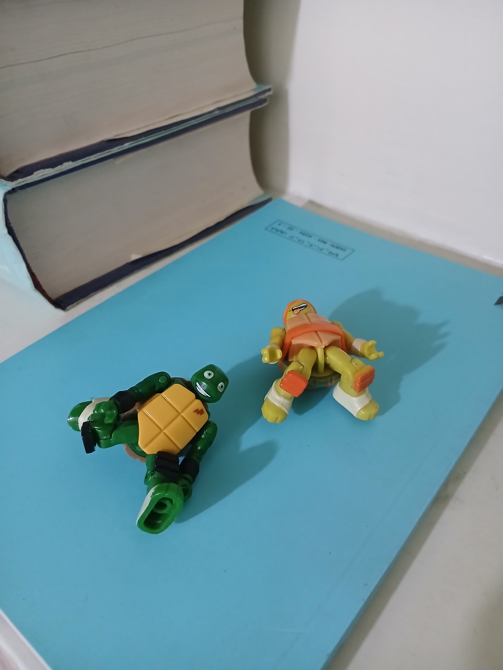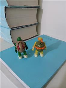 دو عدد مینی فیگور لاک پشت نینجا، مطمئن نیستم ولی فکر میکنم محصول شرک مگا برند کانادا (Mega Bloks) باشن. بلندی شون 5 سانتی متر هست.