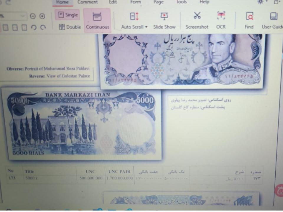 5000 ریال محمدرضا پهلوی 183 در کتاب 85٪ عالی