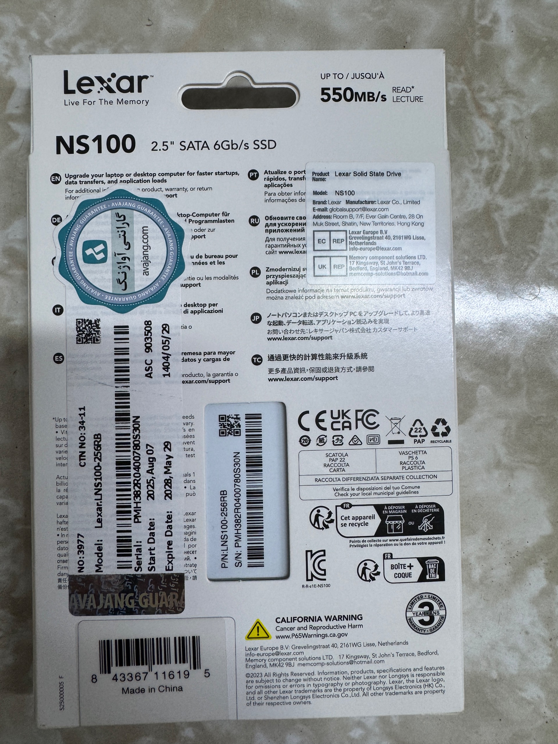 هارد SSD 256GB LEXER گارانتی آواژنگ