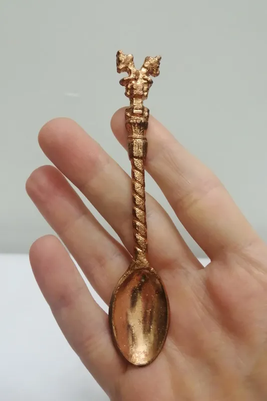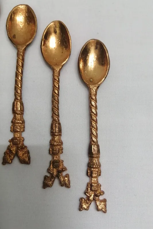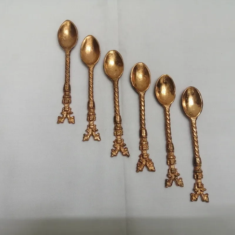 قاشق چایخوری مسی طرح ستون تخت جمشید یک دست کامل 6 تایی ابعاد 10 سانت مطابق با تصویر ارسال به سراسر کشور با بسته بندی مناسب
