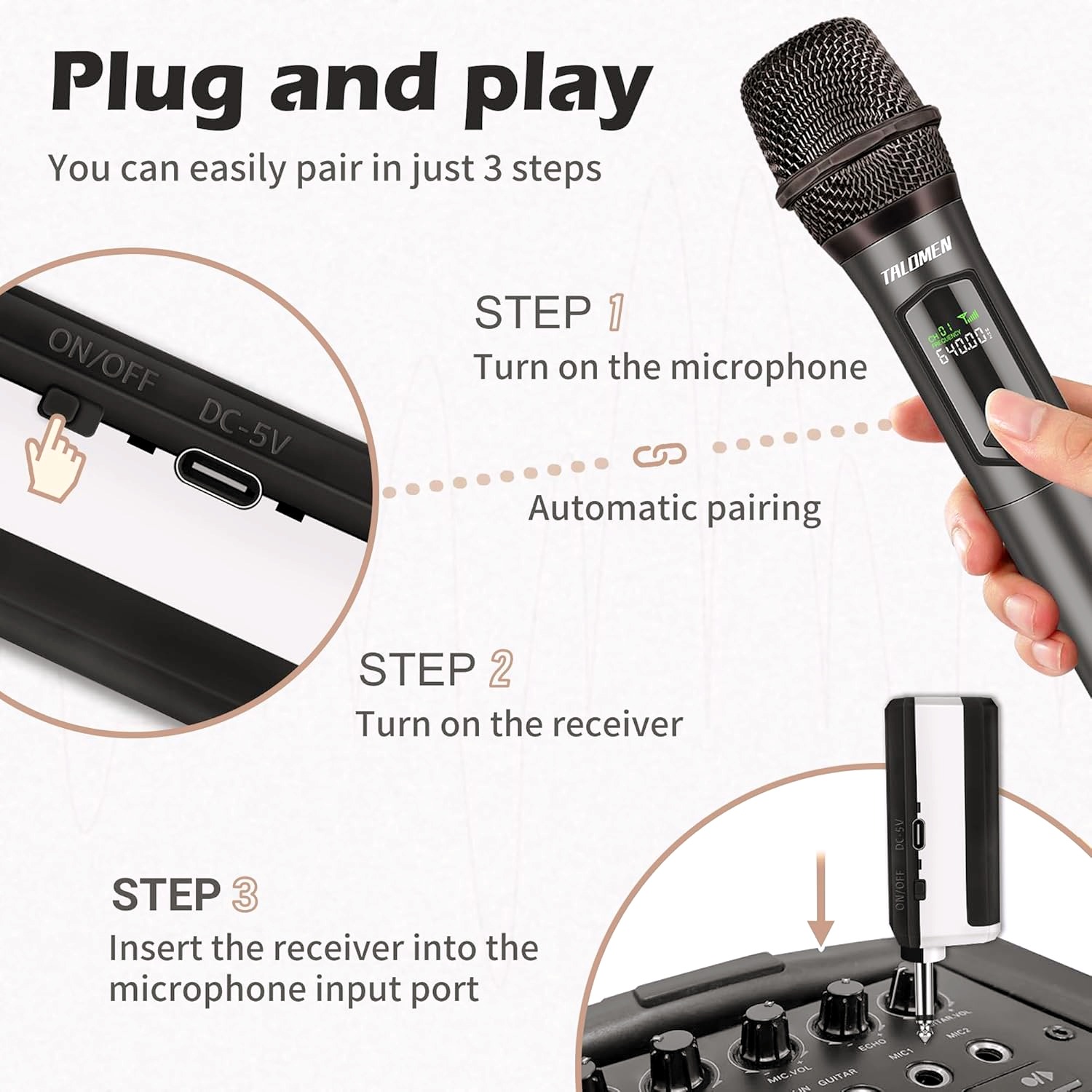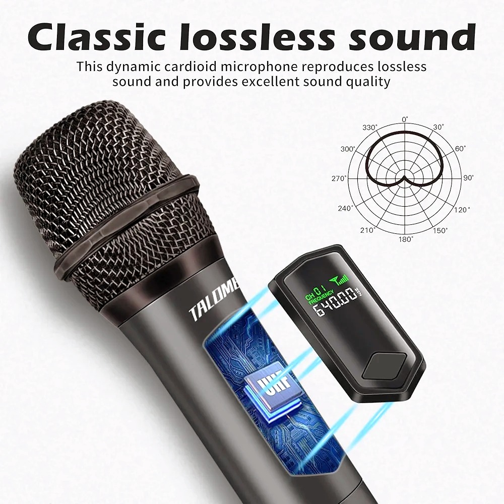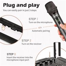 چندکاره: شما فقط باید گیرنده را به یک سیستم صوتی با ورودیهای میکروفون 6.35 میلیمتری و 3.5 میلیمتری (یعنی پورت MIC، نه AUX) مانند میکسرها، آمپلیفایرها، سیستمهای PA، بلندگوهای مهمانی فعال، دستگاههای کارائوکه یا سیستمهای صوتی مهمانی متصل کنید. این دستگاه هم برای استفاده خانگی و هم برای اجراهای عمومی و رویدادهای کوچک مناسب است.