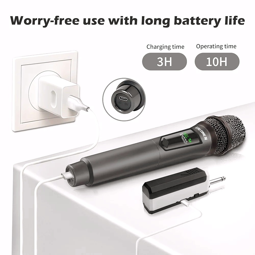 آزادی بدون کابل - با جدیدترین فناوری انتقال بیسیم 2.4 گیگاهرتز، برد دریافت میکروفون بیسیم تا 50 متر (در ناحیه دید) قابل دسترسی است. میتوانید در طول اجرا کاملاً از شر کابلها خلاص شوید و حرکت کنید. این سیستم میکروفون بیسیم دستی بهترین انتخاب برای رویدادهای داخلی و خارجی مانند کارائوکه در خانه، جلسات کلیسا، عروسی، جلسات یا مهمانیهای خانوادگی است.