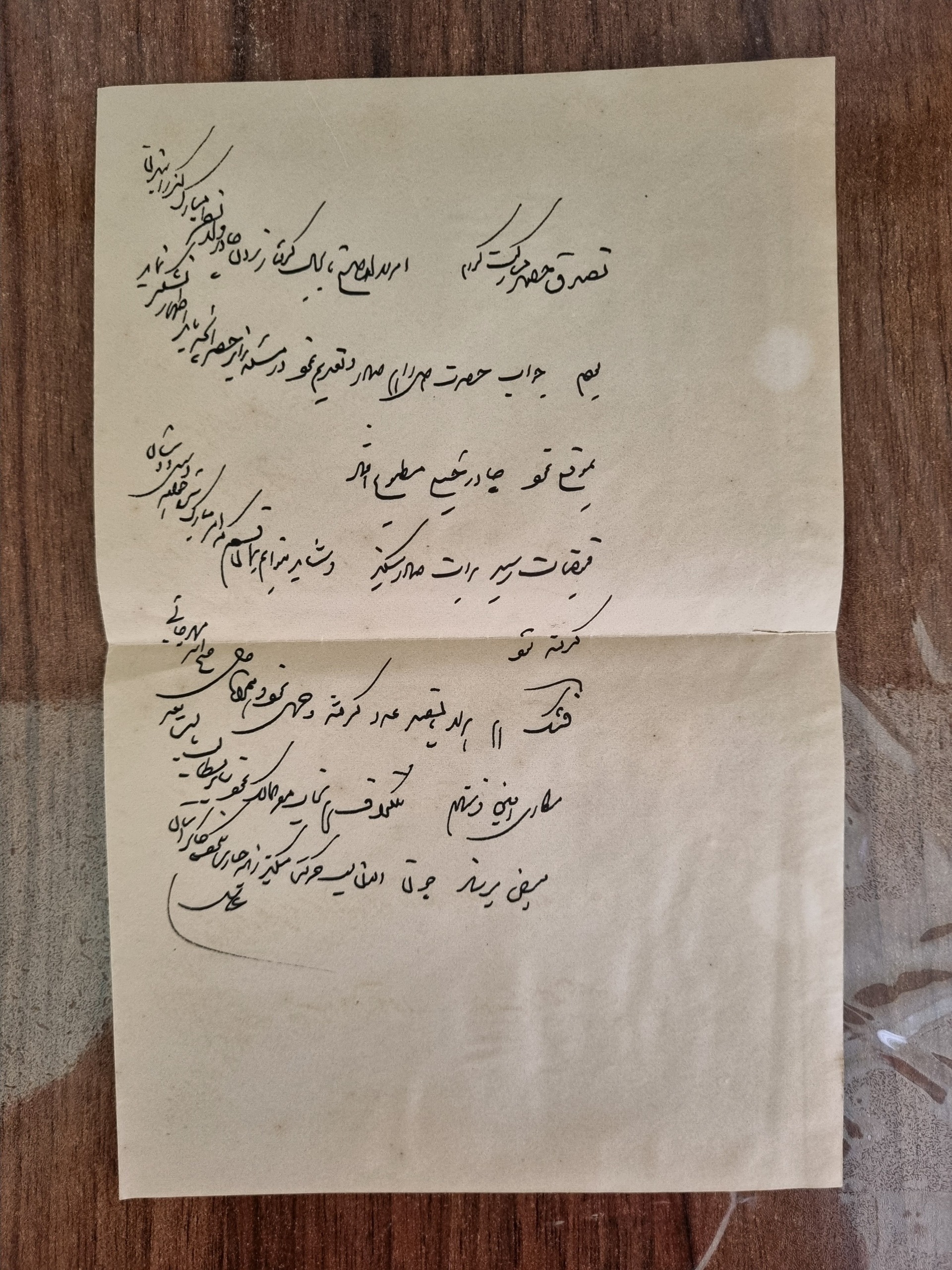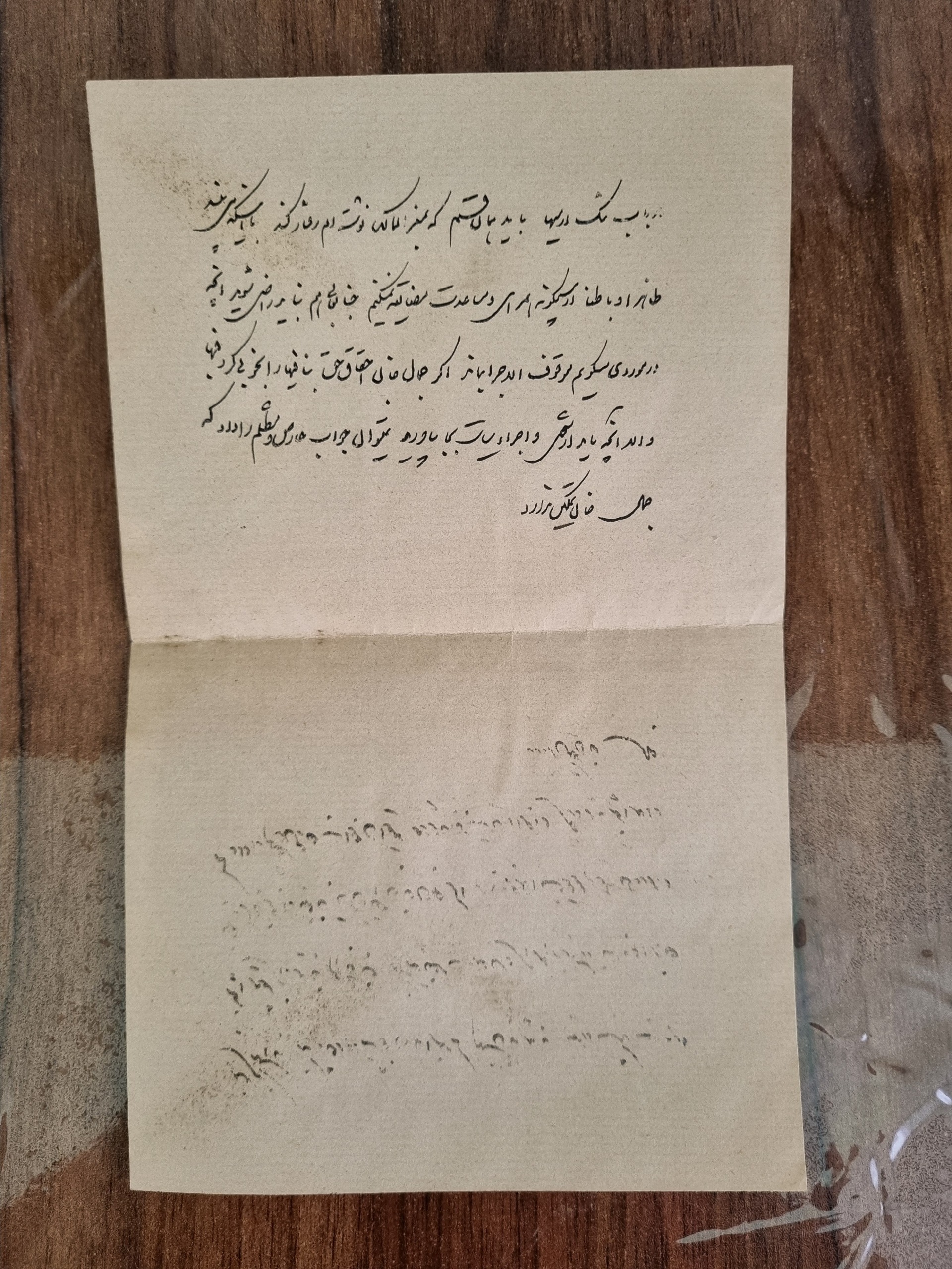 نامه ارسالی از شیراز به بوشهر به شخص نظام السلطنه (سالارمعظم) حکمران مملکت خلیج عربستان (خوزستان) و بختیاری