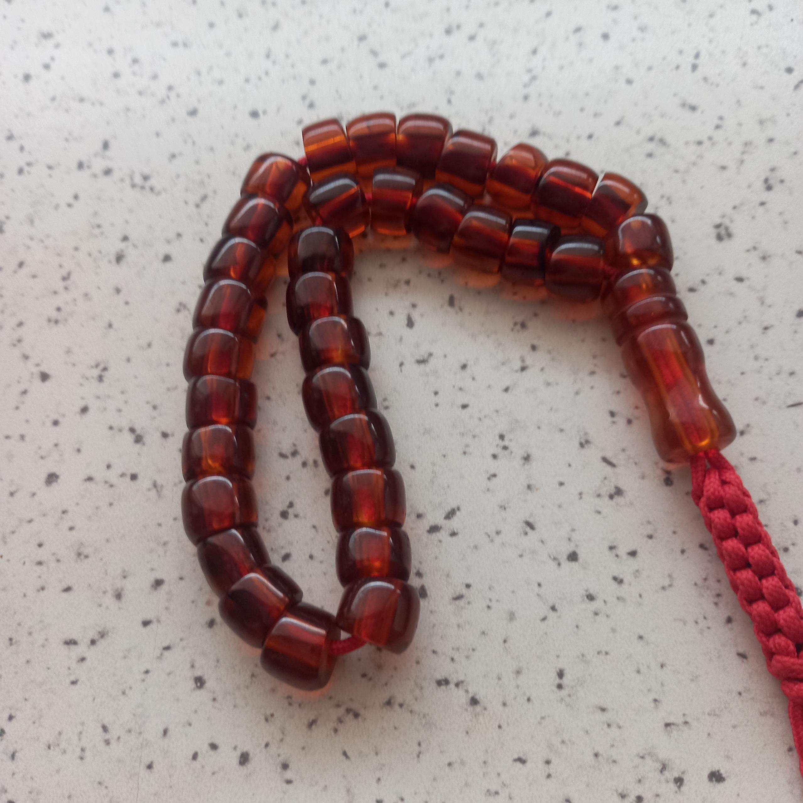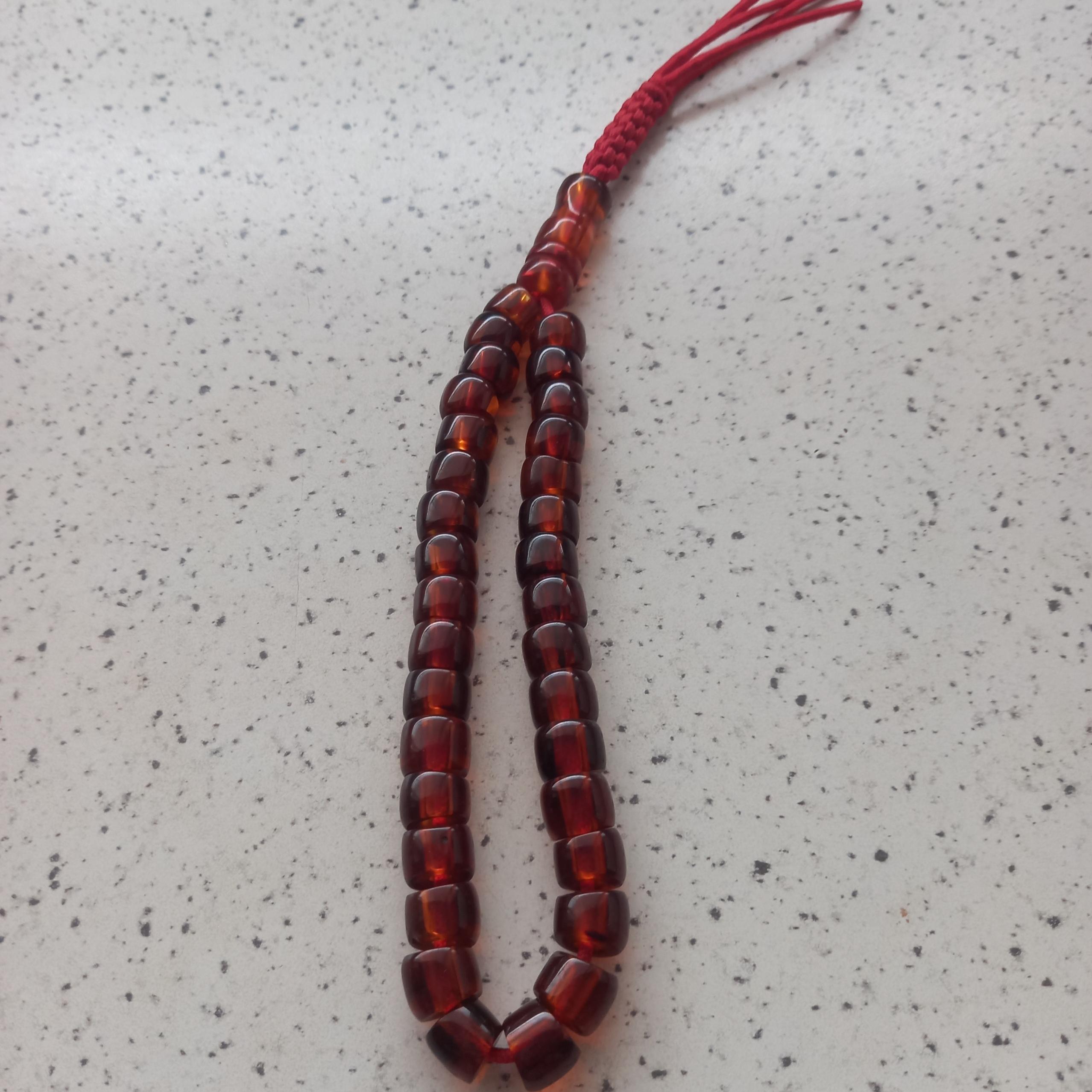 تسبیح سندلوس 33 دانه به رنگ نوشابه ای که چون رنگ نوشابه در قسمت رنگهای ایسام نزده بود رنگ واقعی اش را گفتم خیلی خیلی زیبا و چشم نواز
