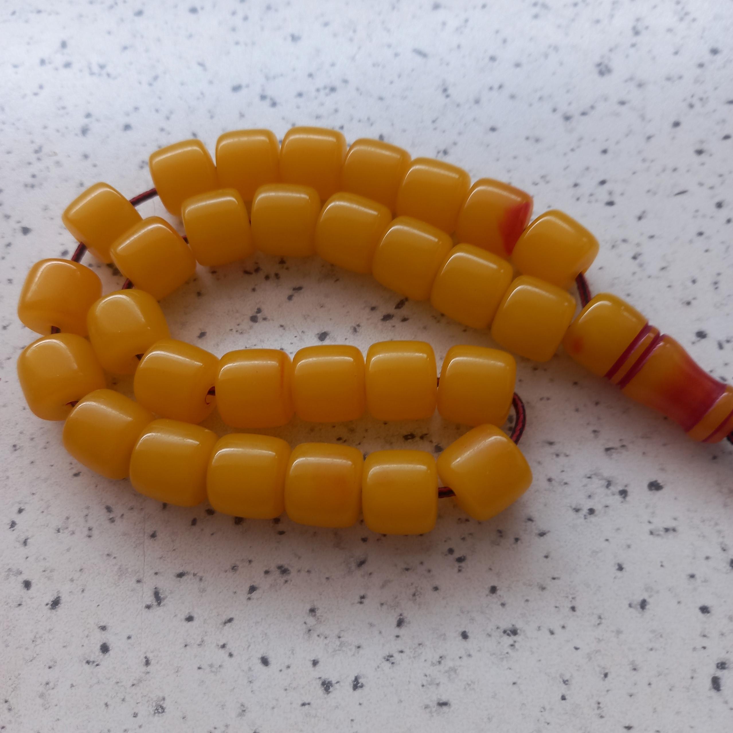 تسبیح 33دانه دانه درشت رنگ بسیار زیبا زرد به تمام معنا زیبا