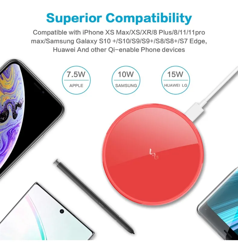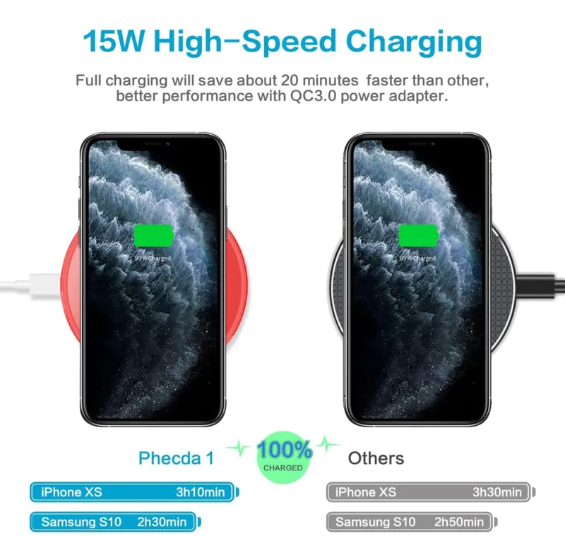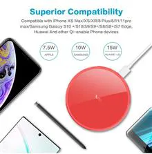 حالت شارژر بی سیم سریع شارژر بی سیم 15 واتی Max Super Fast. 15 وات سازگار با LG V60/V50/V40/V35/V30/G8/G7؛ 10 وات سازگار با Samsung Note 20/Note 10+/Note 9/Note 8/S21+/S20+/S10+/S10E/S9+/S8+؛ 7.5 وات سازگار با iPhone 15/14/13/13 Mini/iPhone 13 Pro Max/iPhone