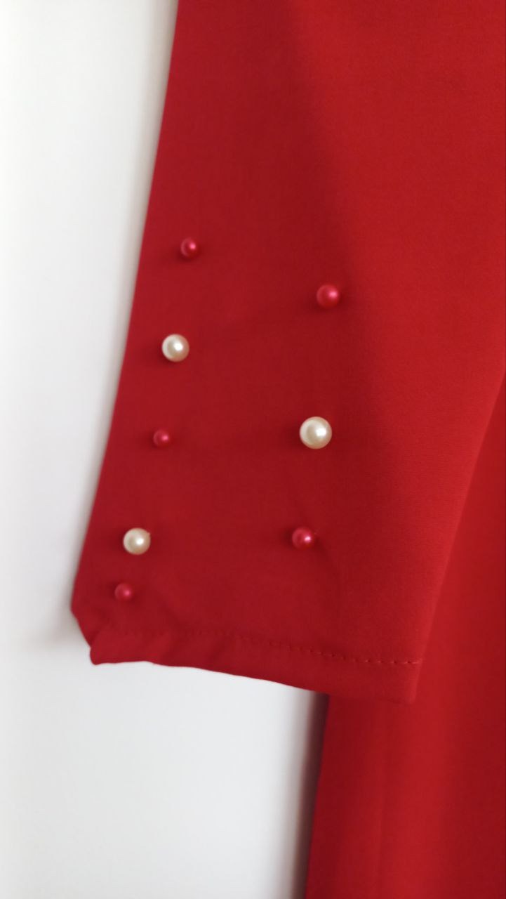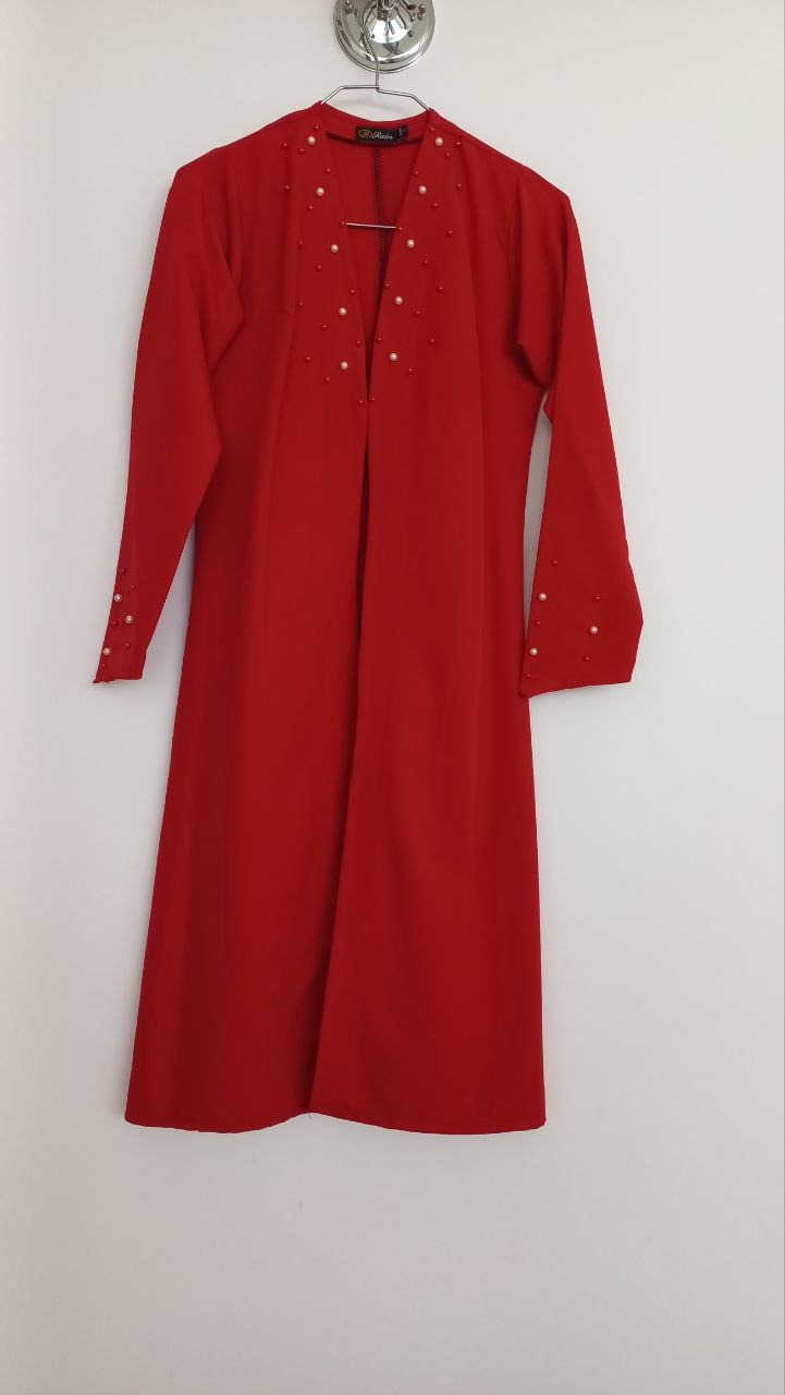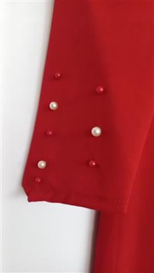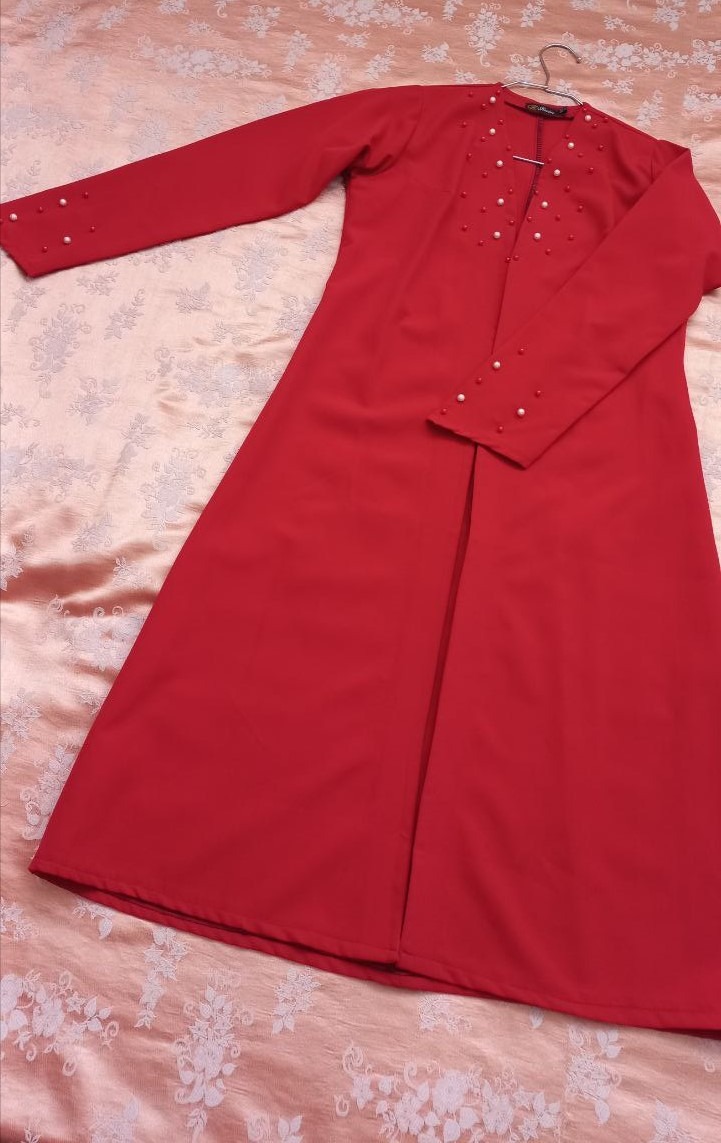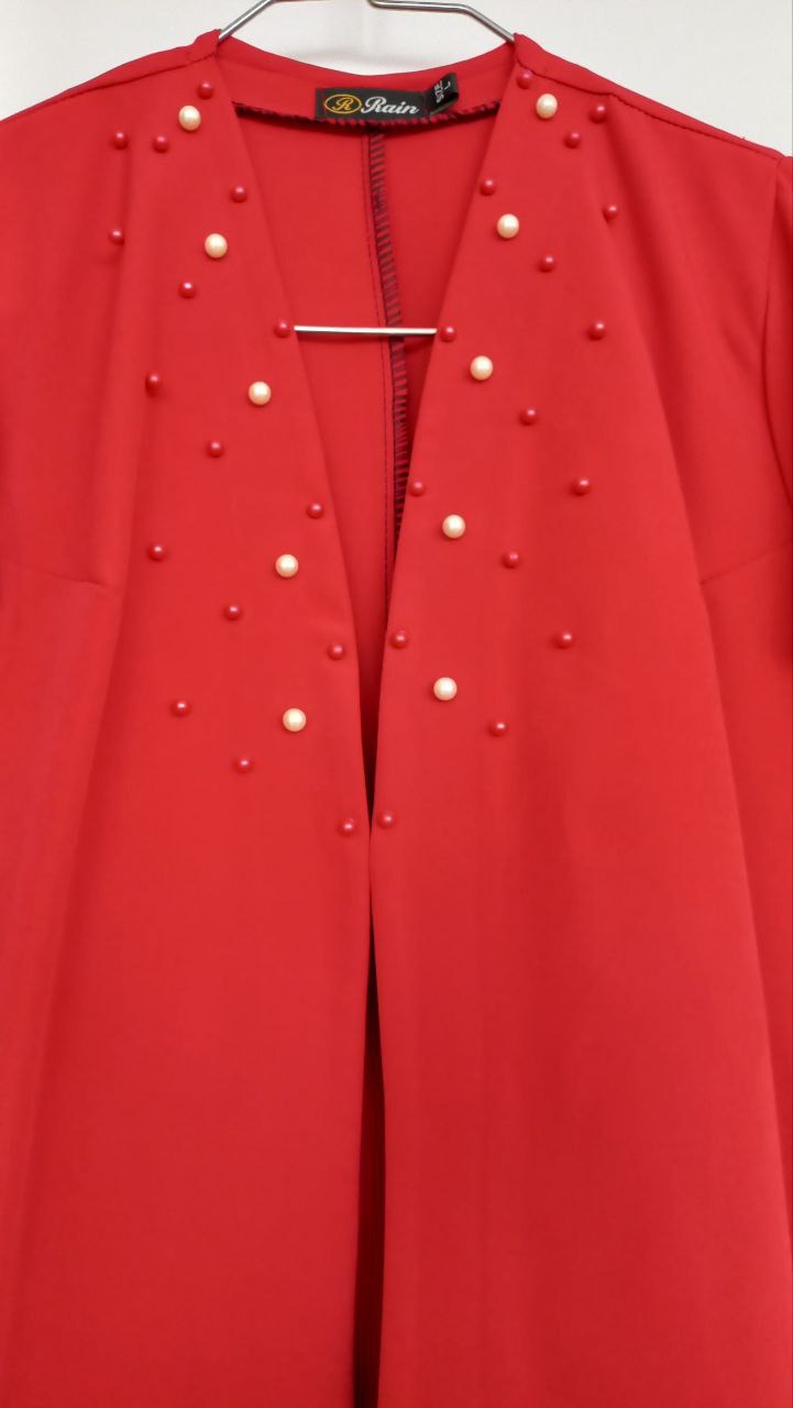 رنگ مانتو به تصویر اول نزدیک تر هستش دور یقه و آستین ها مروارید قرمز و سفید کار شده