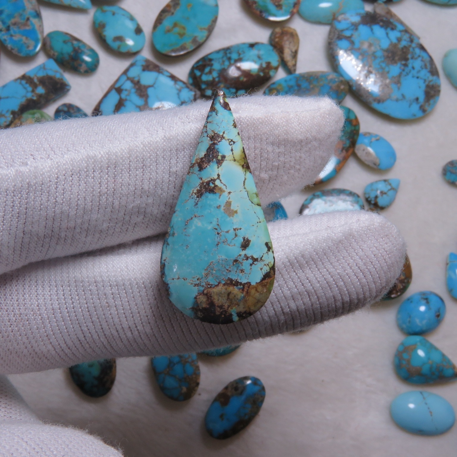 فیروزه نیشابوری اصل صد درصد معدنی و طبیعی بدون احیا درجه 1 رنگ آبی وزن 5.39 گرم و ابعاده 17 در 34